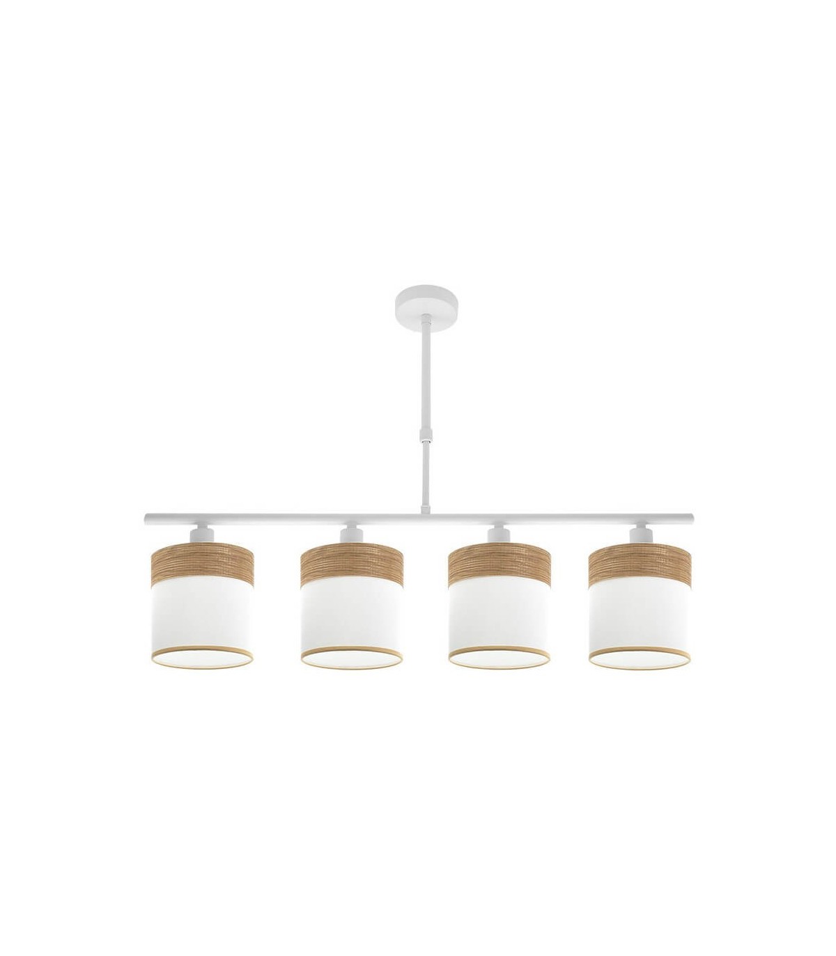 Lámpara de techo de la serie Cloe de color blanco con pantalla en textil blanco e imitación roble. De estilo contemporáneo, presenta en su pantalla un contraste de colores, resultando muy original y decorativo para iluminar en dormitorios, comedores, salones y zonas de trabajo, creando un ambiente diferente.