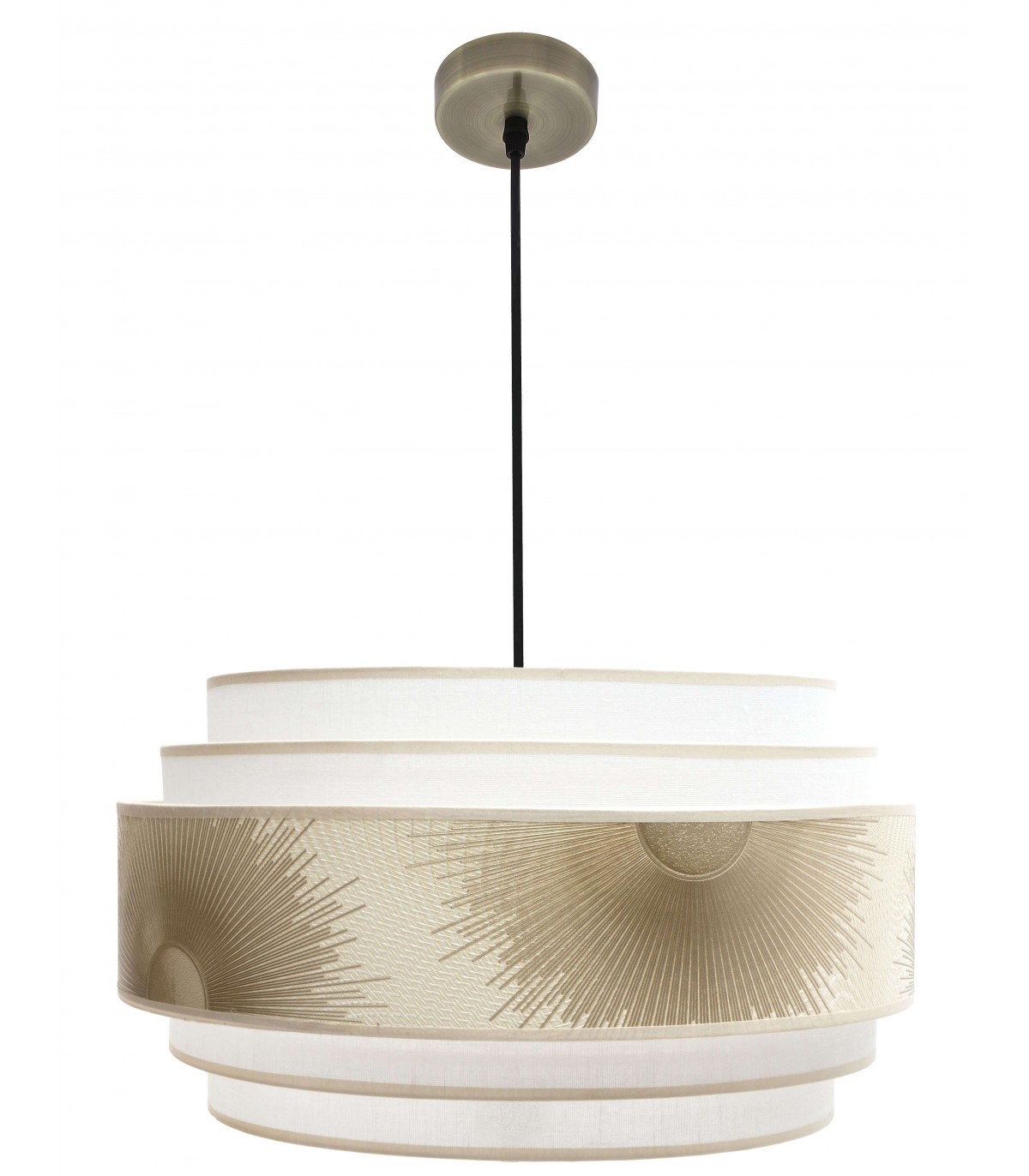 LAMPARA DE TECHO 50 Ø X 110 SOLEO 3 METAL ORO TEXTIL BLANCO Y ORO