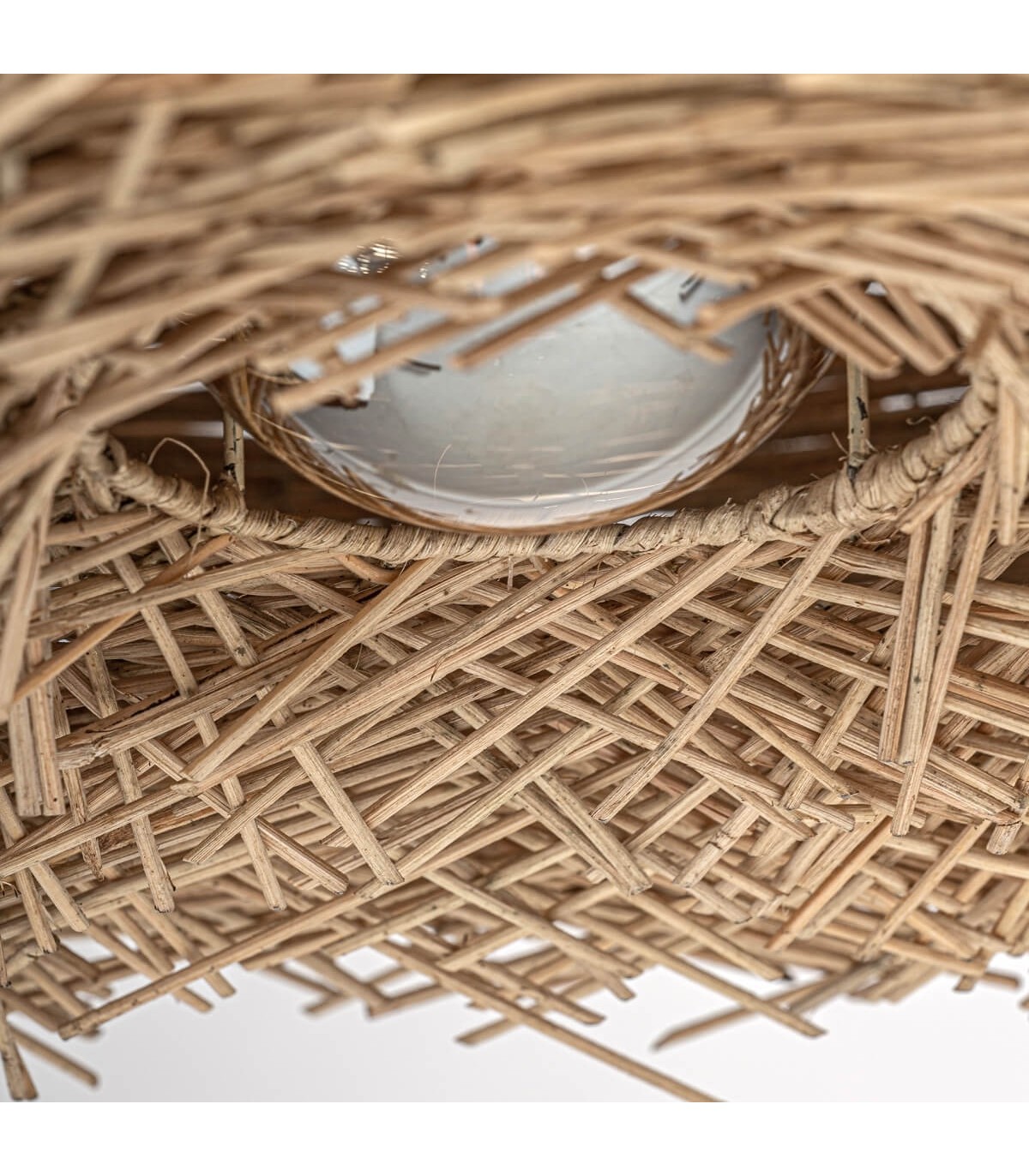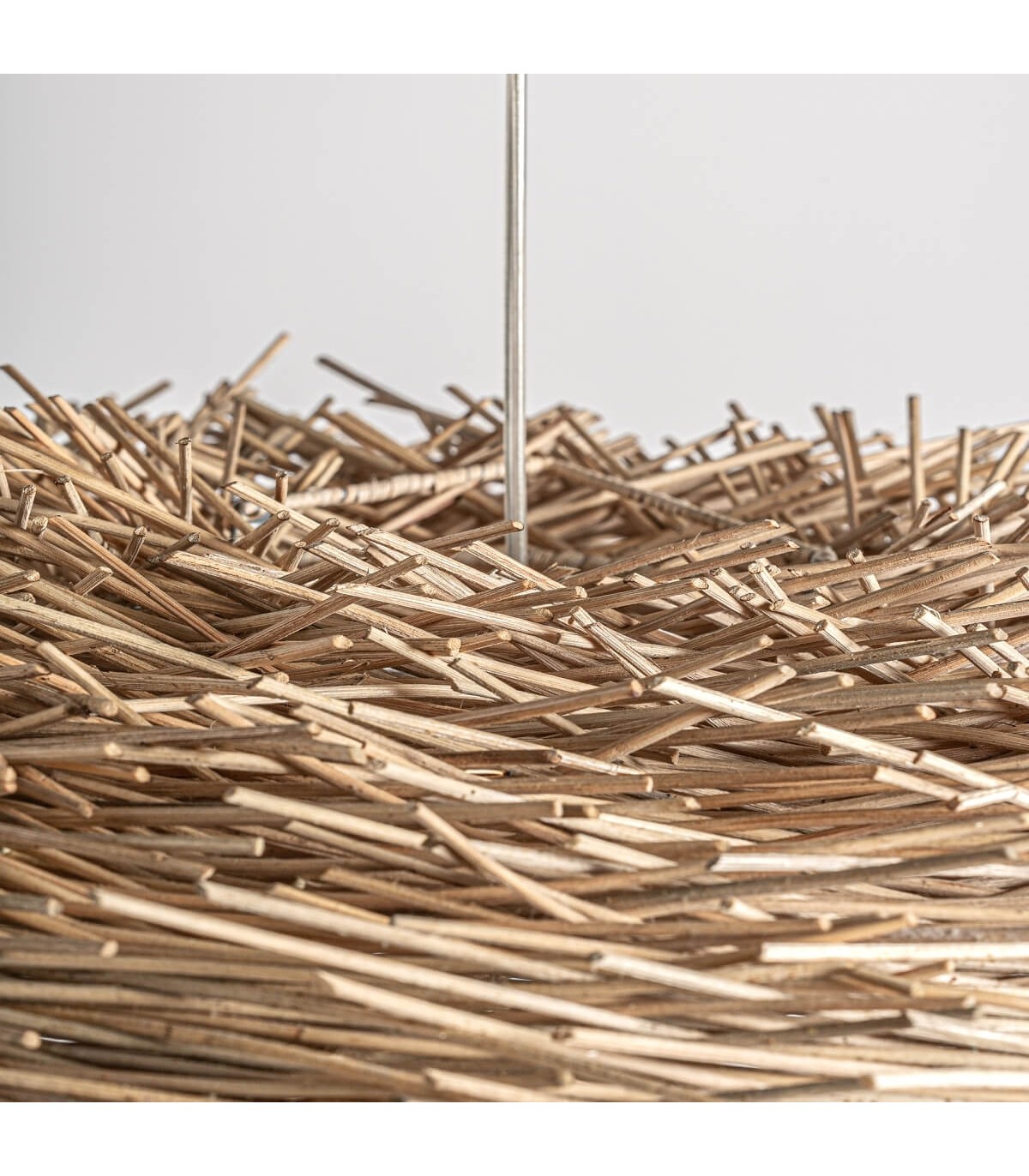 Lámpara de techo realizada de manera artesanal, en ratán natural, una lámpara grande que te enamorará apagada y encendida con el cálido juego de sombras que proyecta.