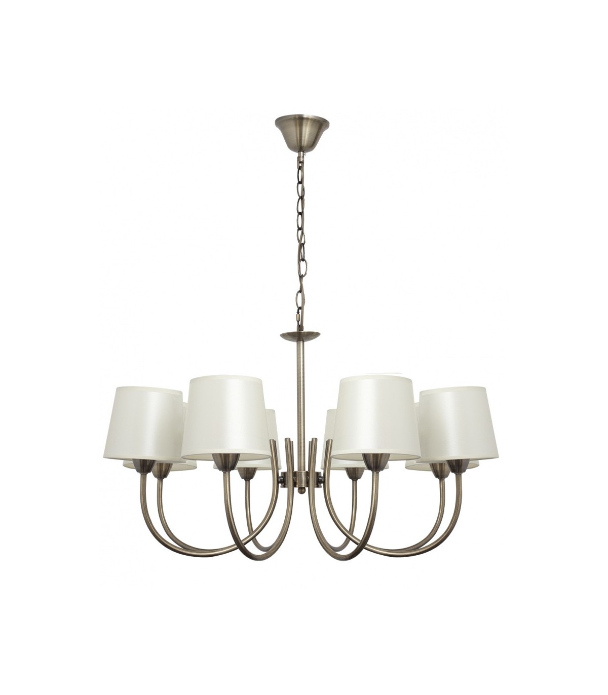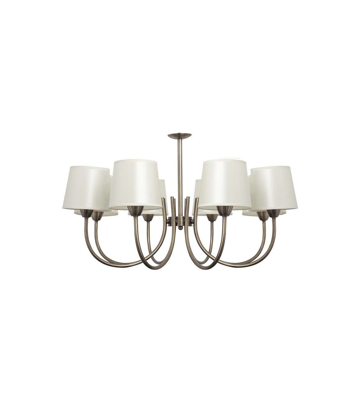 Acabado, metal oro viejo patinado, pantalla beige.