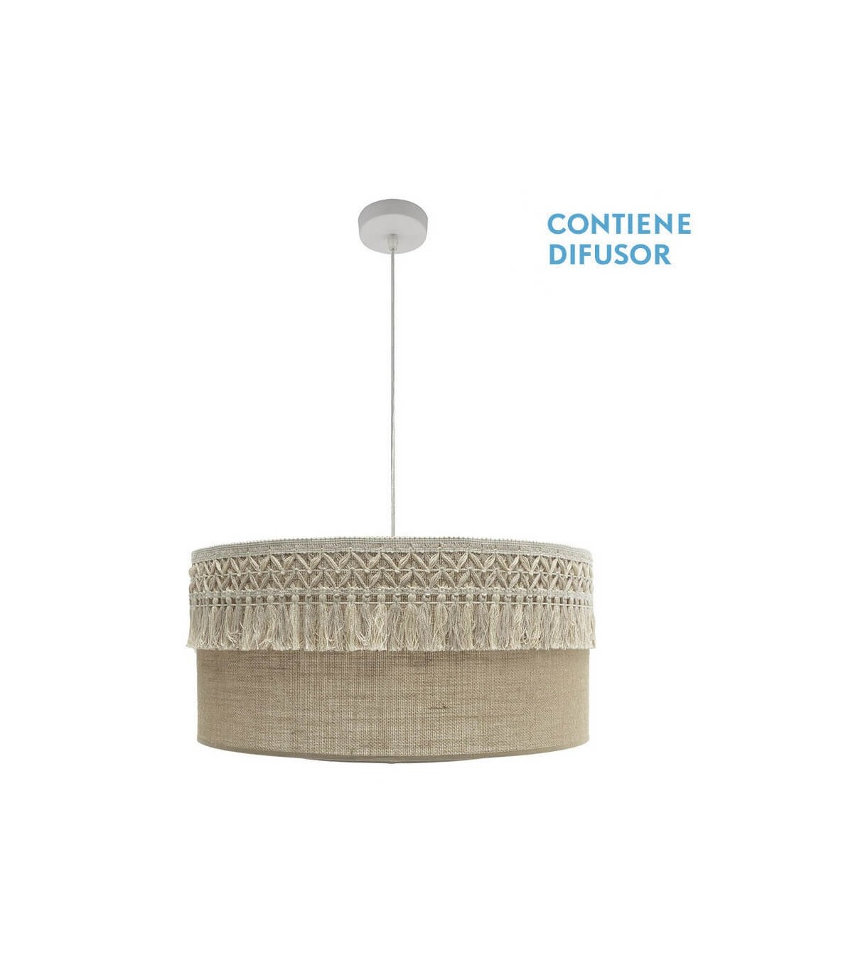 LAMPARA DE TECHO 60 Ø KATERINA TELA DE SACO METAL BLANCO