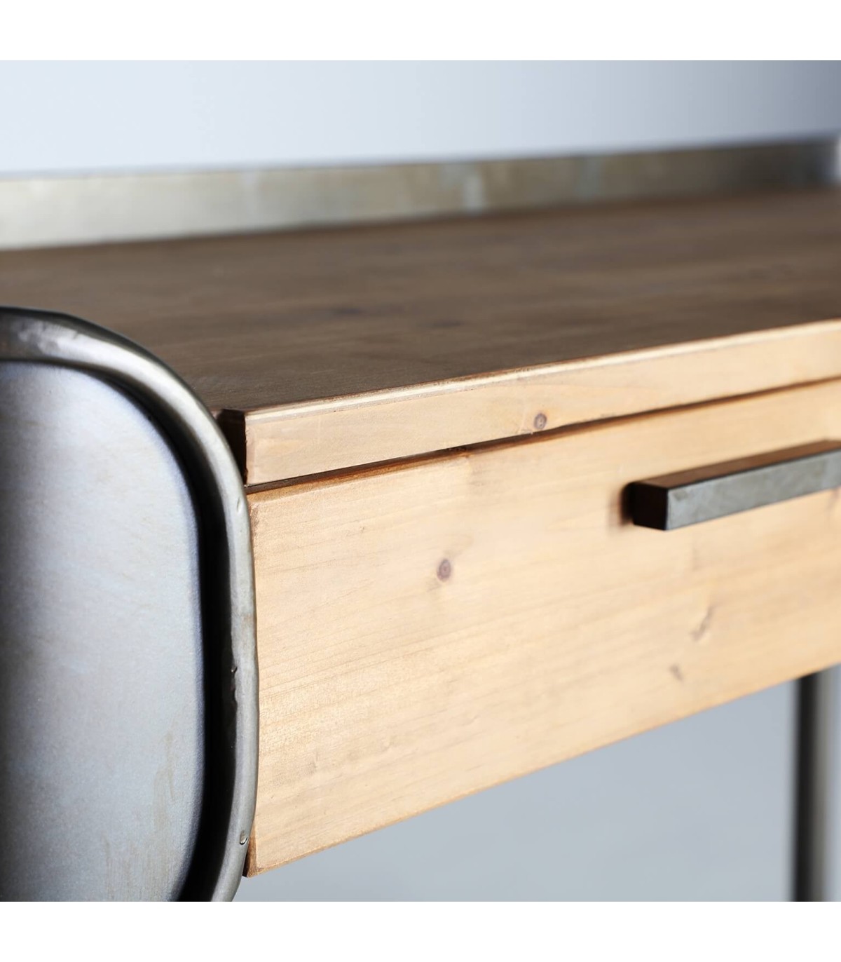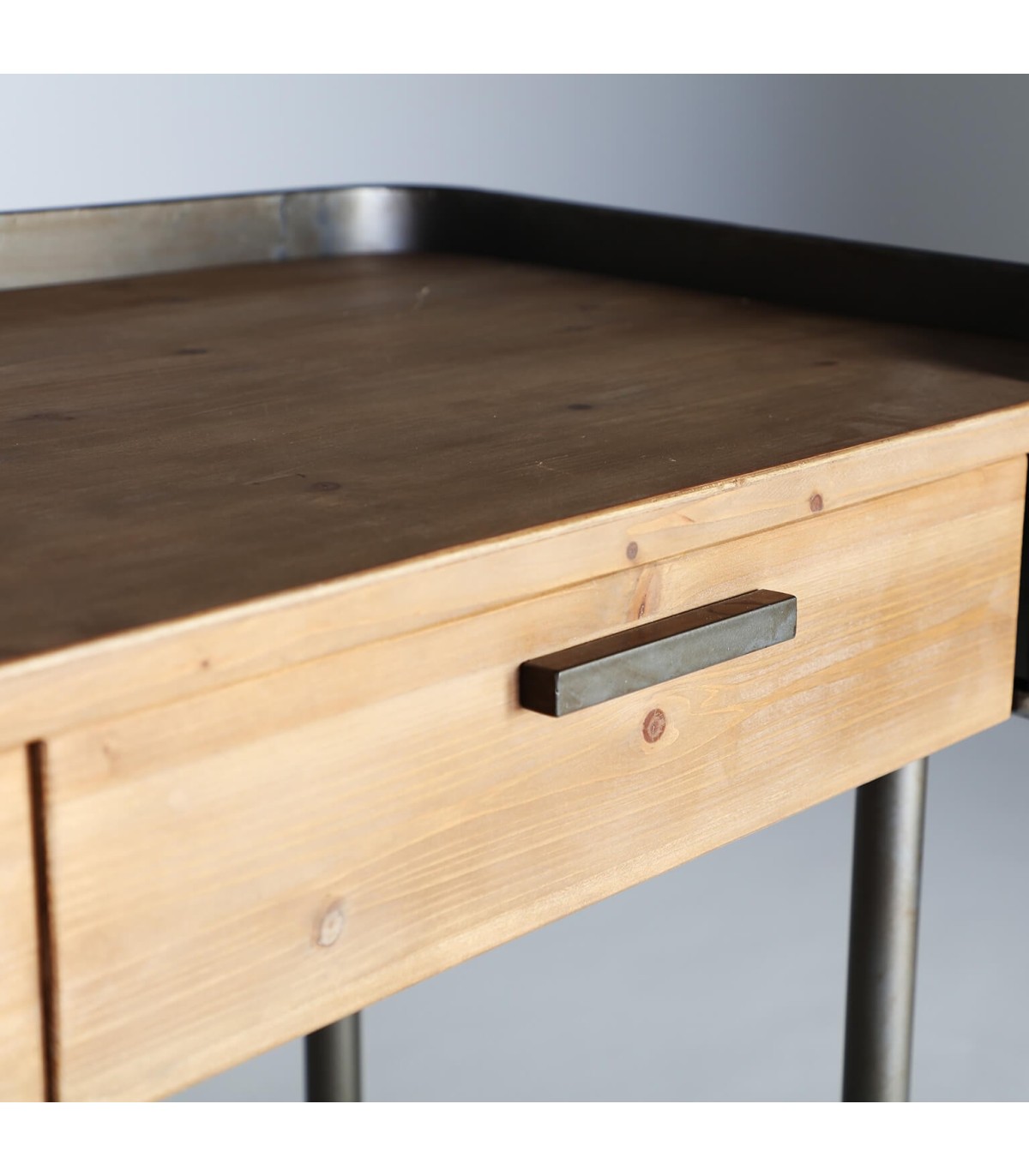 Escritorio de nuestra colección Cireb, una colección que se caracteriza por su combinación entre la madera natural y el hierro forjado, entre las lineas rectas y las lineas curvas, una colección que cuida el diseño industrial dándole una vuelta de tuerca.