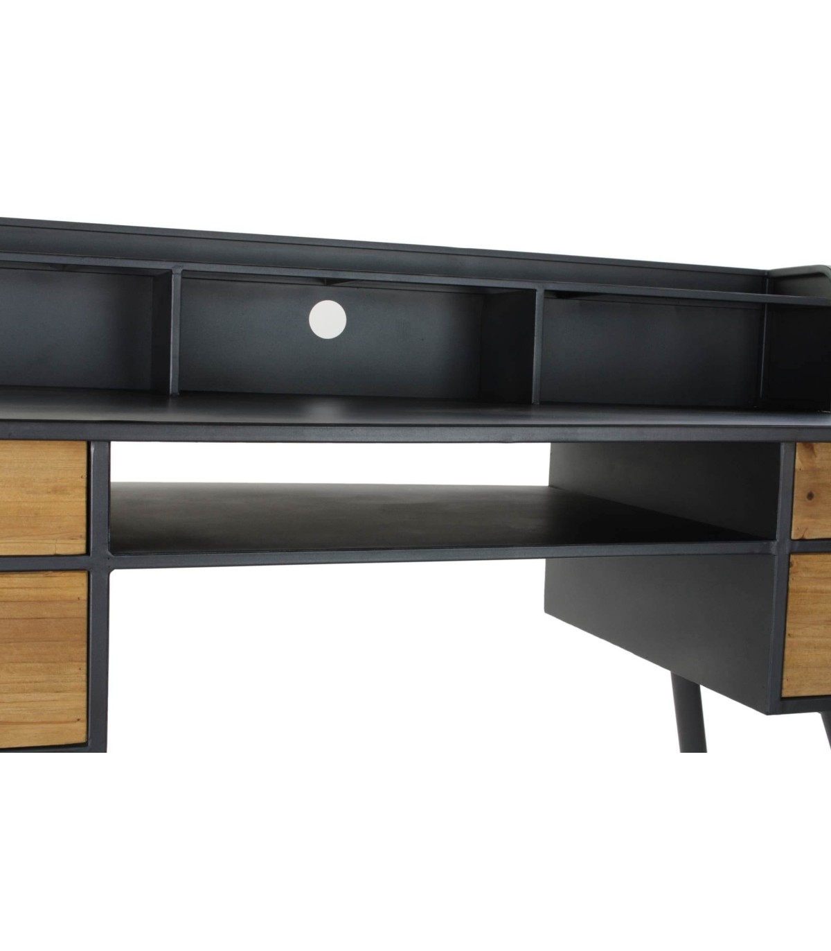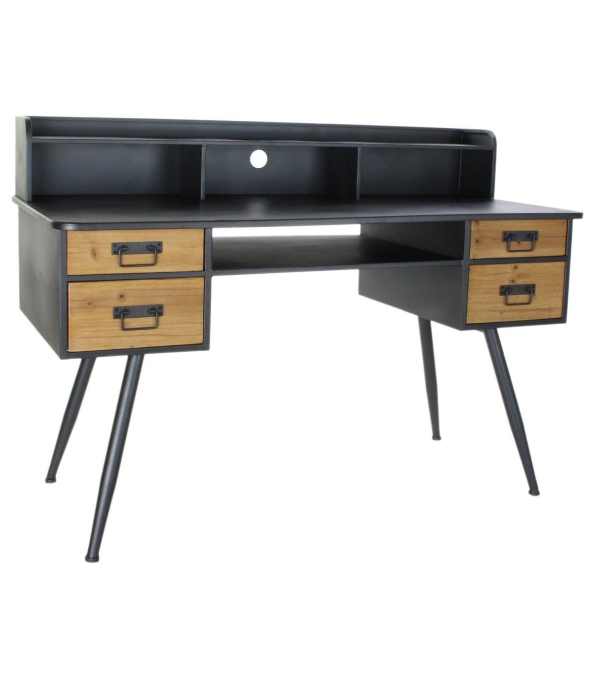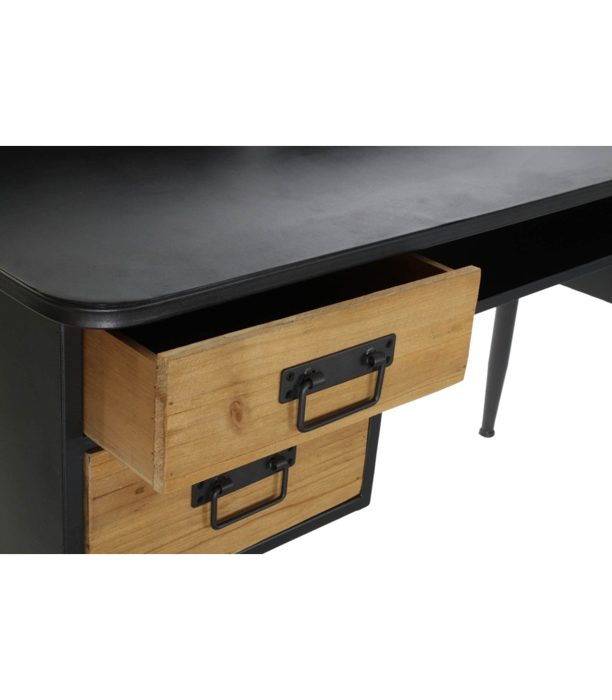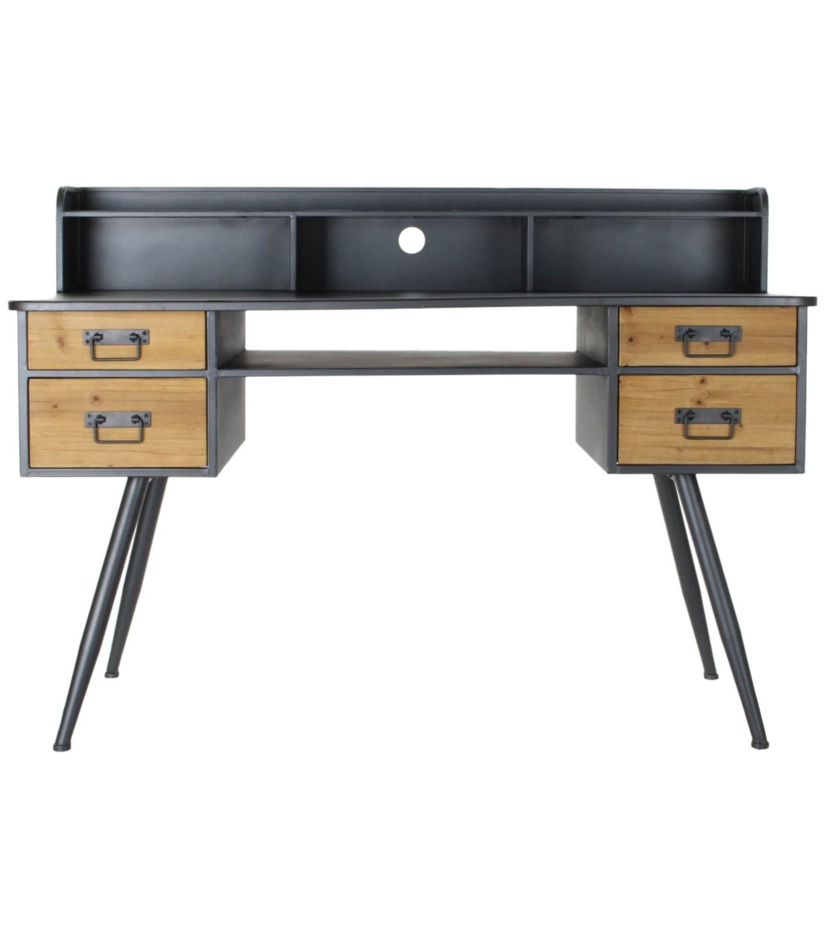Escritorio del más puro estilo instustrial con el perfecto contraste entre el hirro forajado negro de la estructura y el acabado de la madera vinyage. pieza perfecta para darle carácter y consistencia a tu zona de trabajo en casa o la oficina.