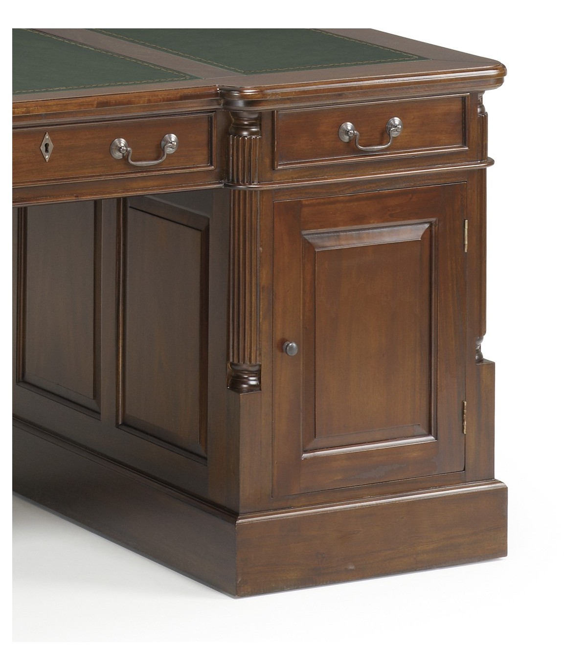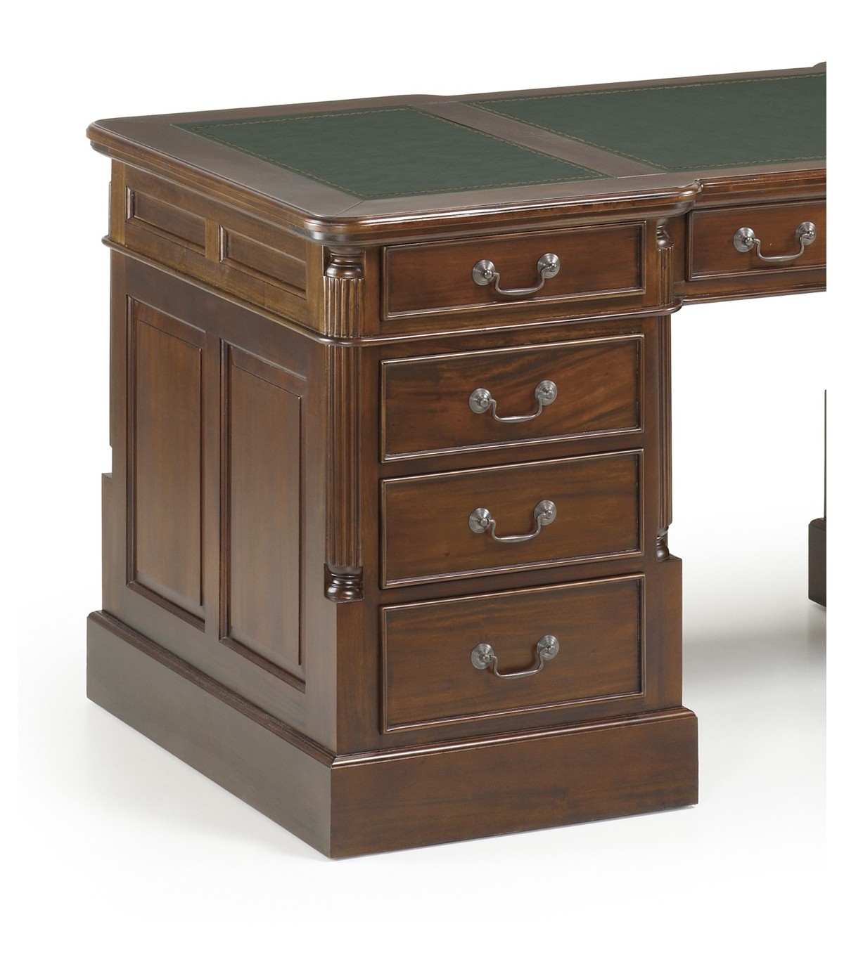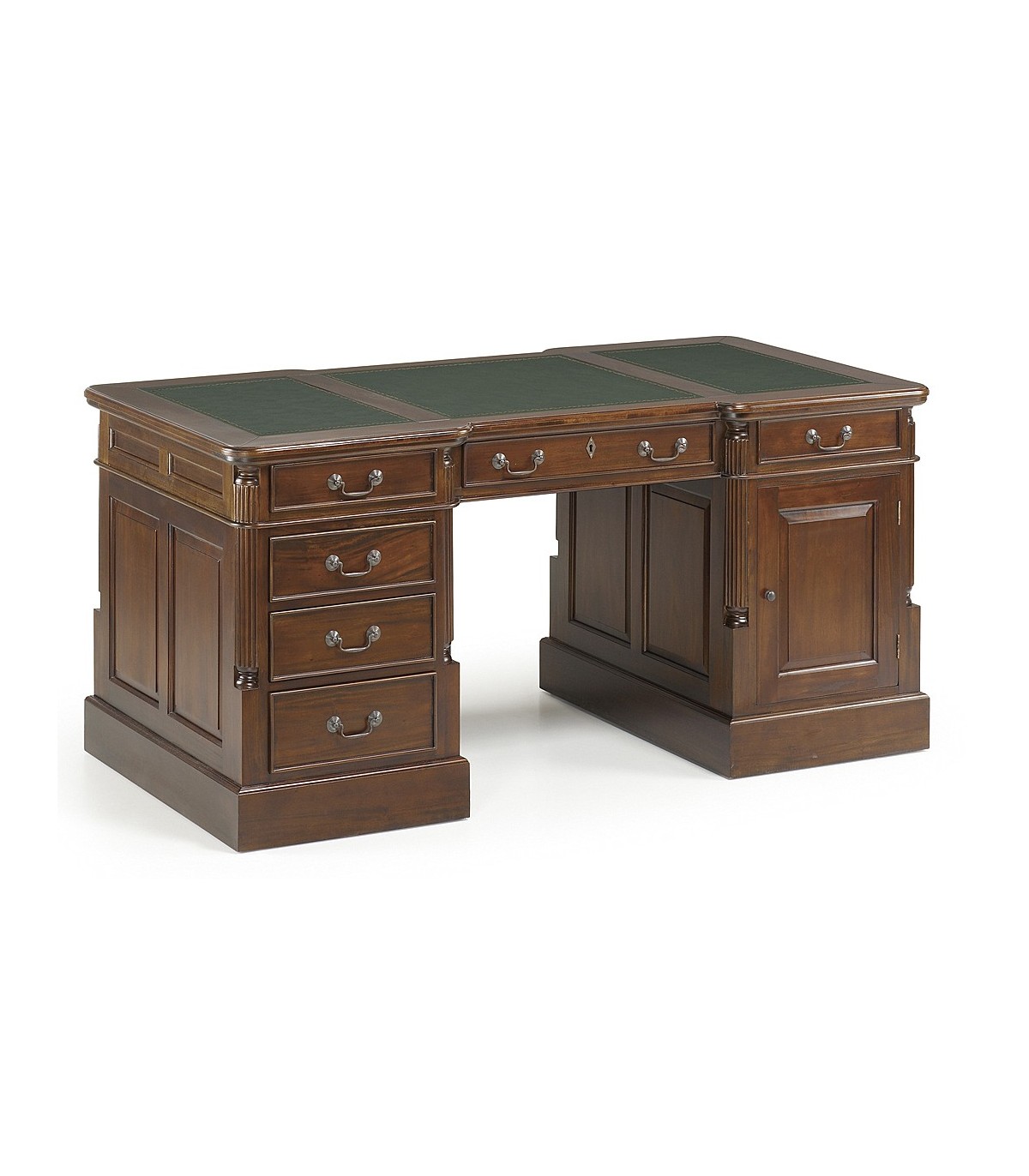 • Mesa escritorio victoriano, 6 cajones, 1 puerta estilo clásico.