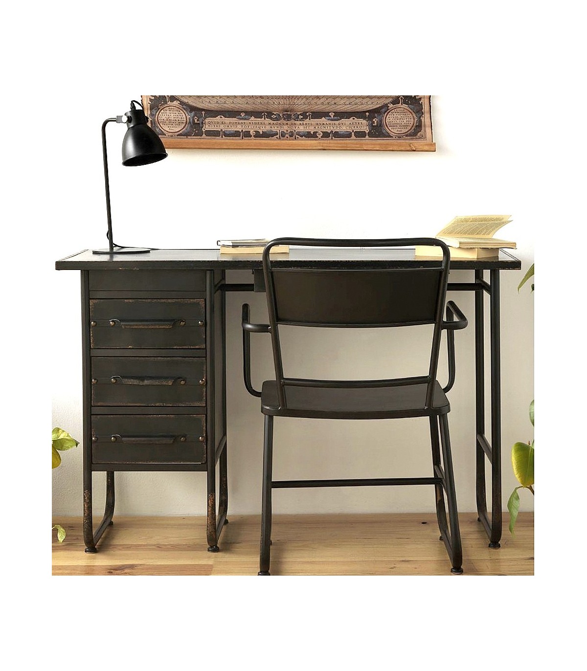 • Mesa escritorio, 3 cajones, estilo industrial.