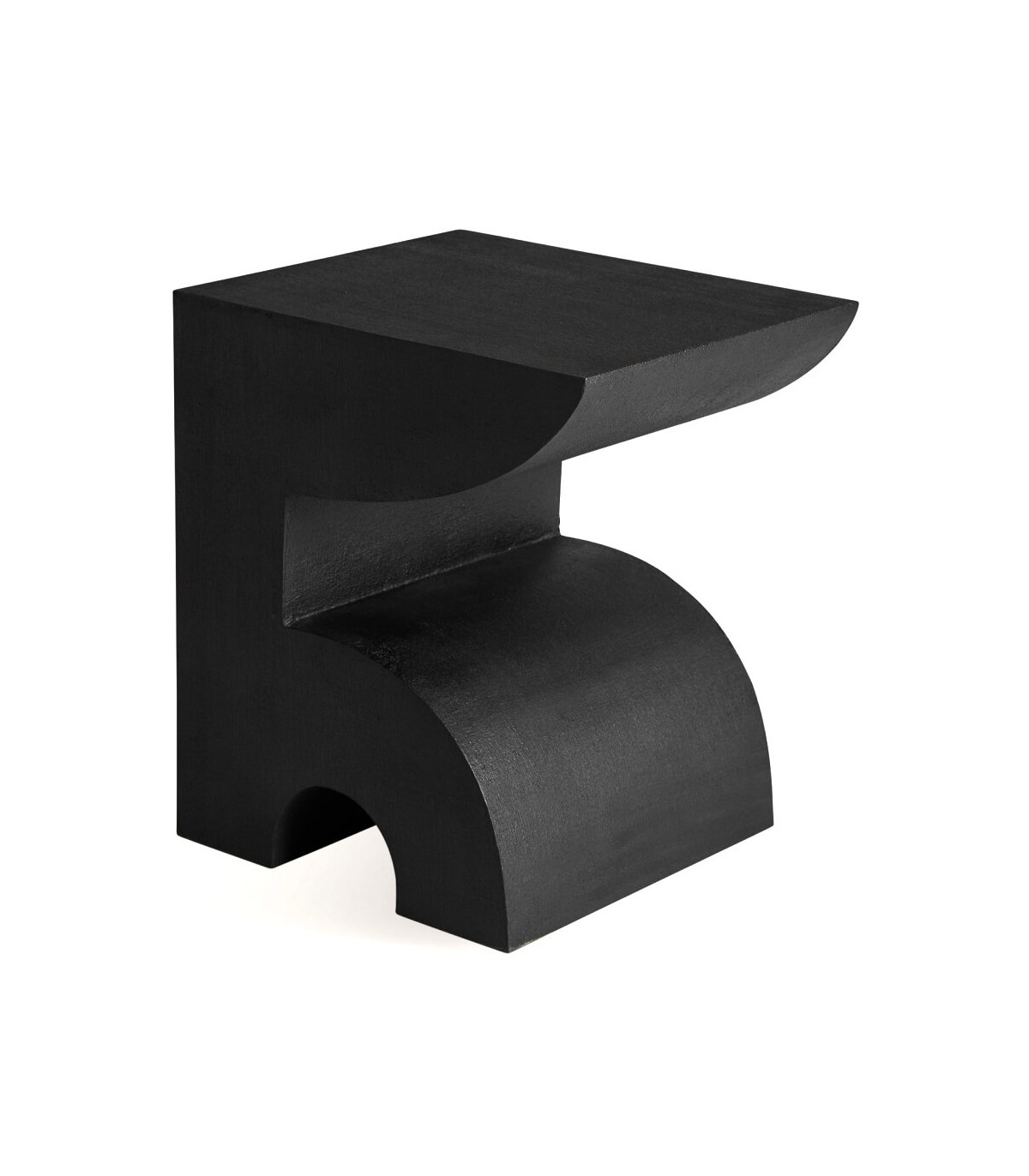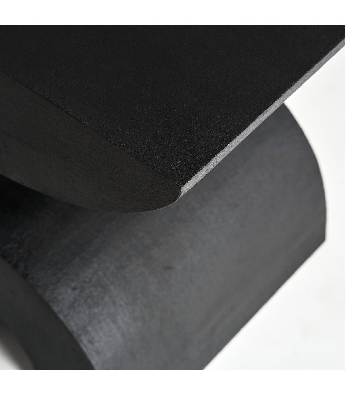 Mesita auxiliar realizada en cemento acabado texturado negro, con un diseño muy original, una mesita auxiliar muy decorativa.
