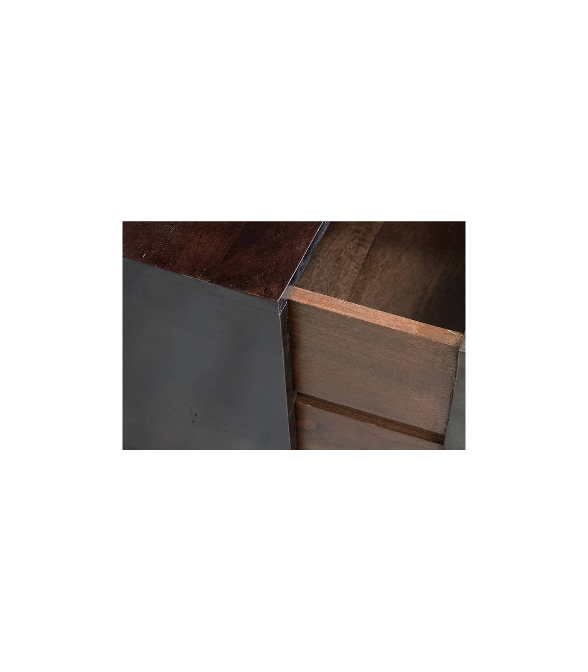 - Acabado, artesanal, madera tallada a mano acabado nogal oscuro, patas y tirador en hierro forjado negro.