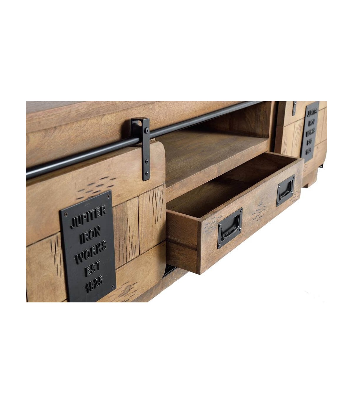 Mueble de TV, 2 cajones, 2 puertas correderas, estilo industrial.