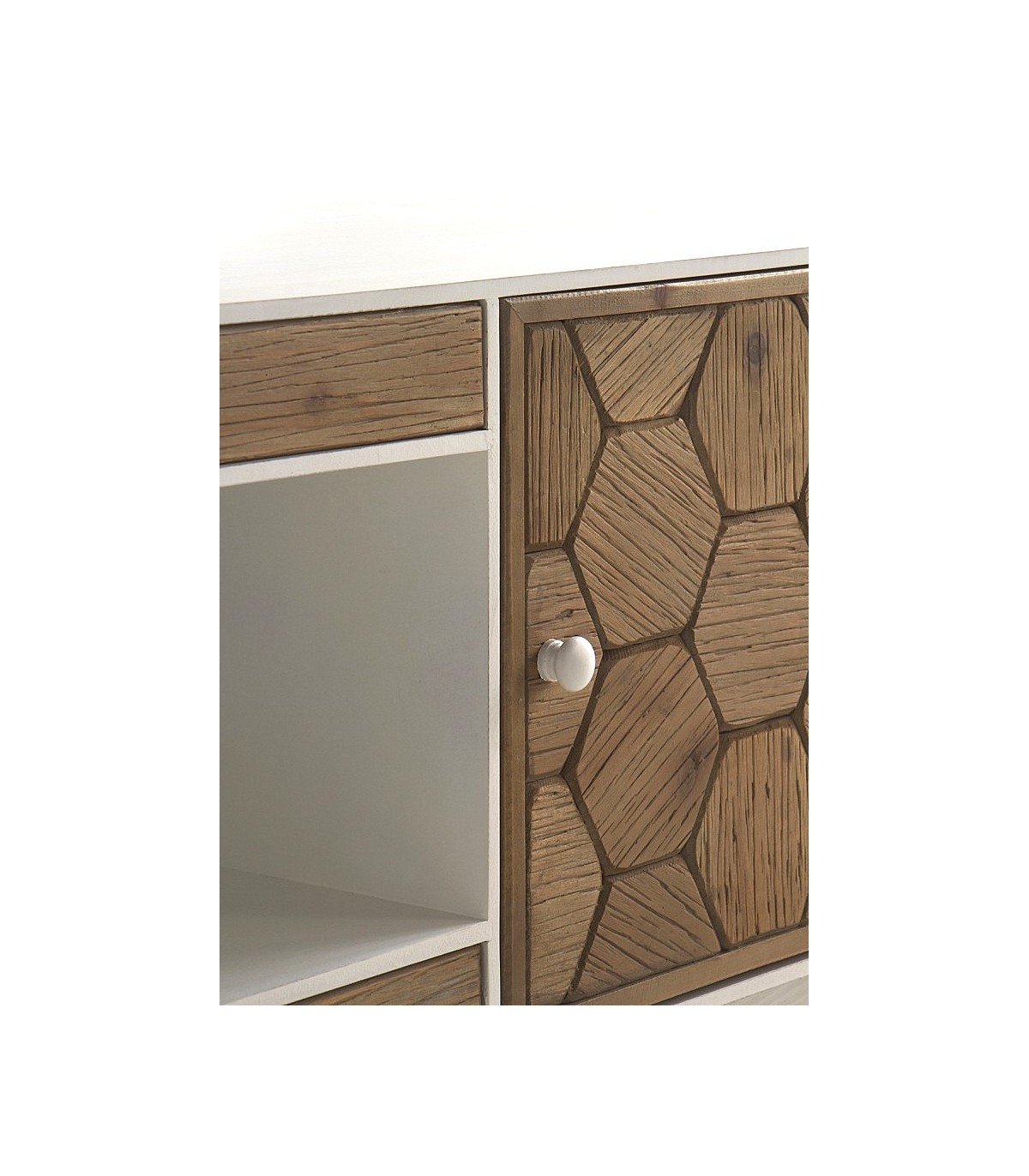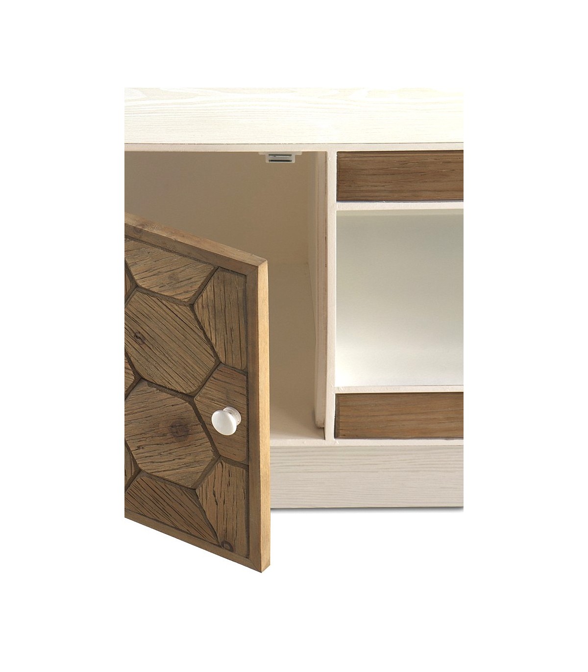 Mueble de televisión con un acabado fresco y original combinando dos acabados sobre madera de fresno, una colección muy versátil, con muchos muebles para combinar.