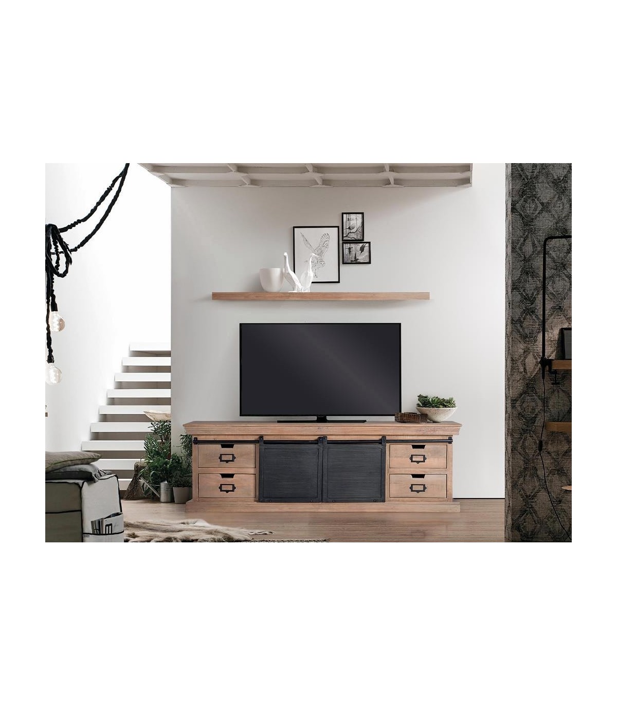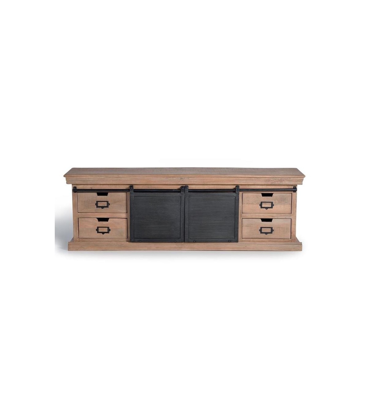 - Mueble de TV, 4 cajones, 2 puertas corraderas, estilo industrial.