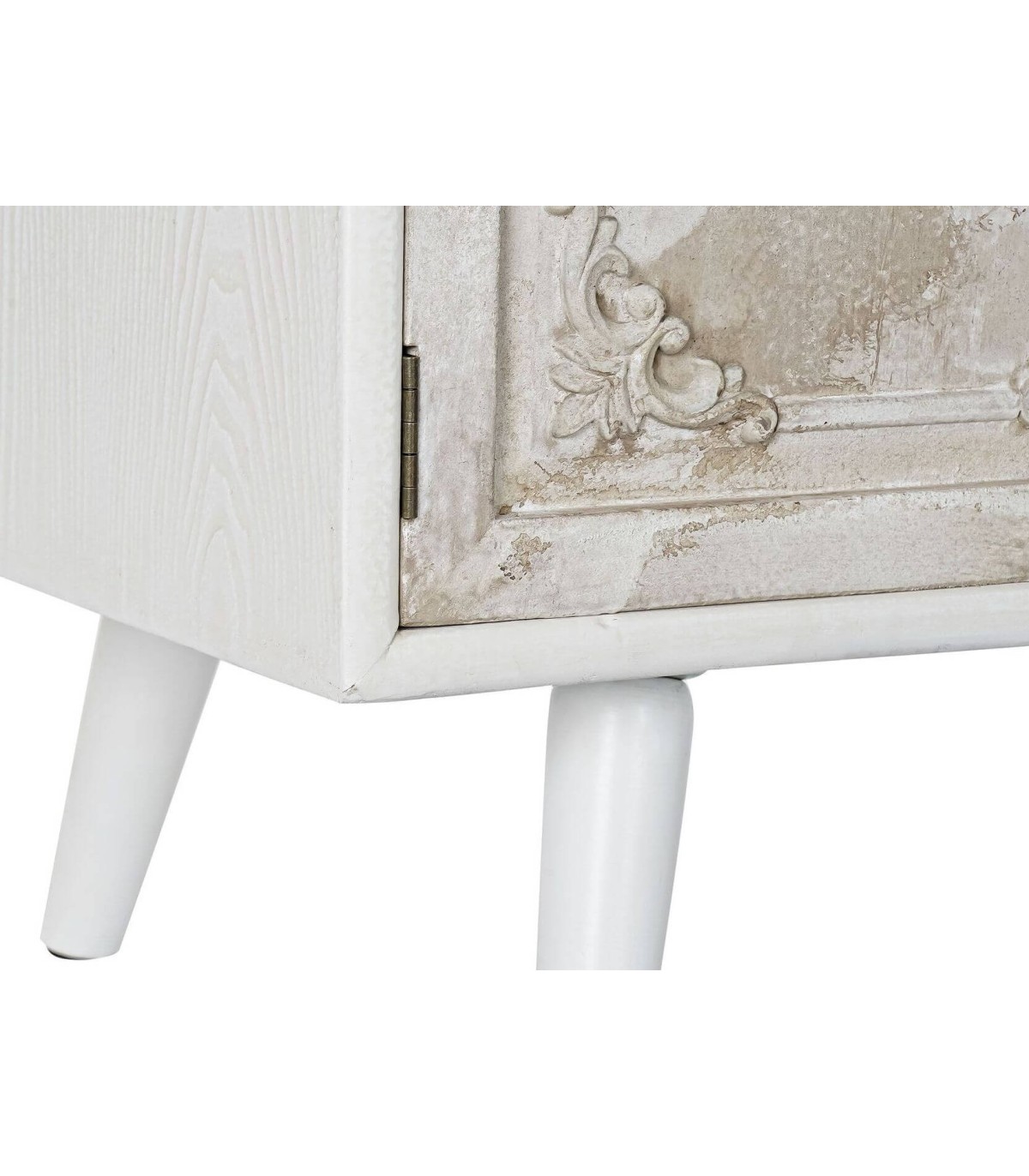 Acabado, estructura patinada en blanco, frentes tallados rozados.