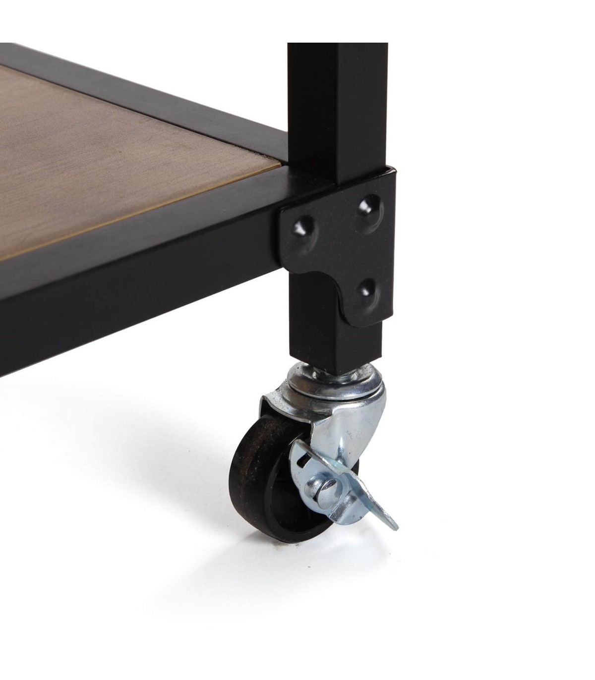 • Acabado, metal negro, madera imitación nogal, 2 ruedas con freno.