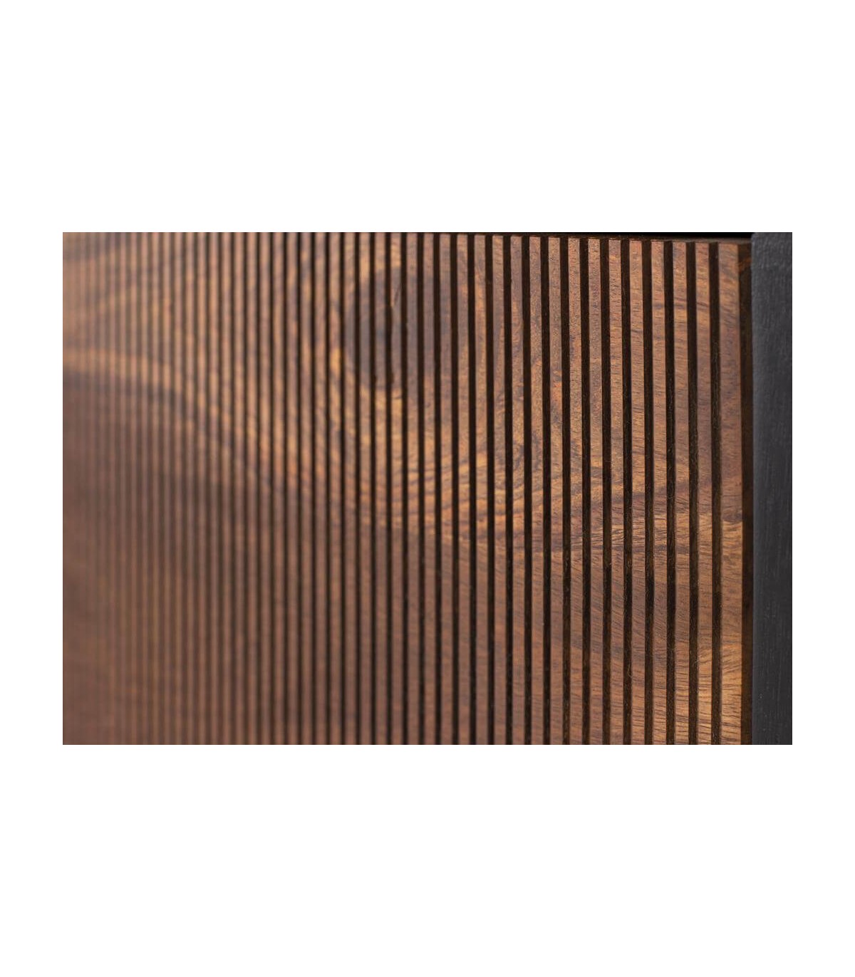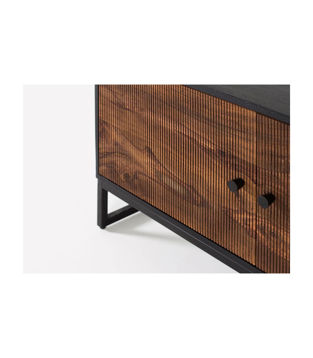 Acabado, patas en metal negro, puertas en madera de palisandro y estructura en madera de mango color negro.
