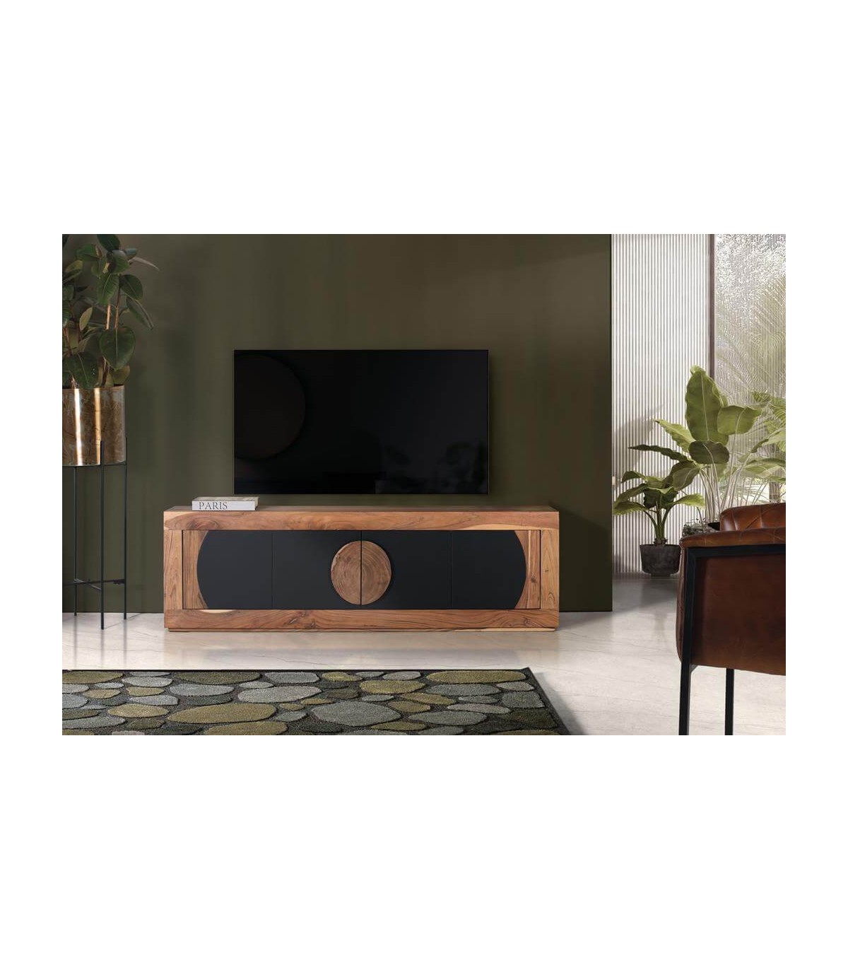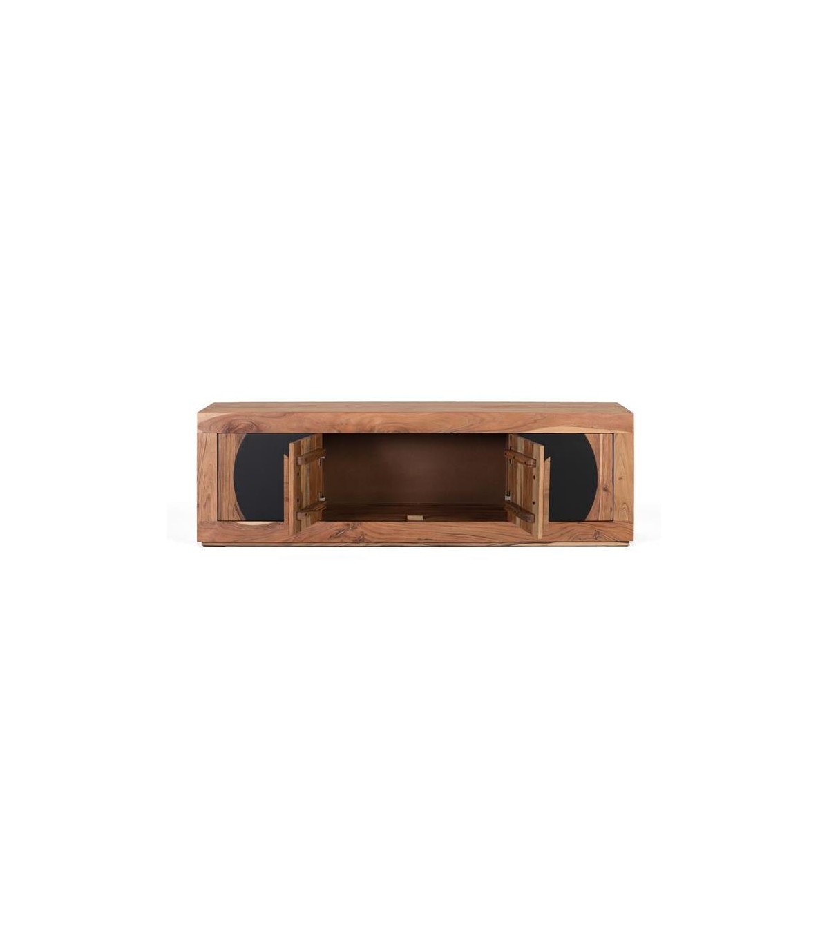 Increíble mueble de TV grande realizado artesanalmente en madera de acacia acabado natural, de estilo colonial, perfecto para grandes salones.