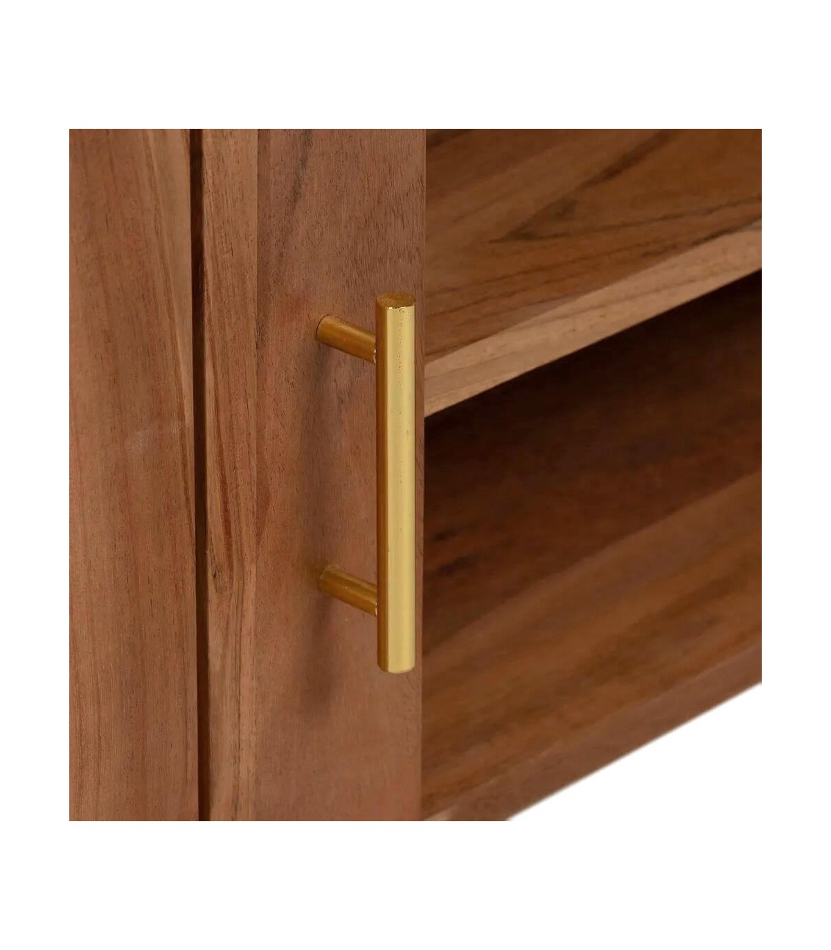 Los tiradores metálicos dorados completan esta pieza perfecta para salones con alma mediterránea y contemporánea.