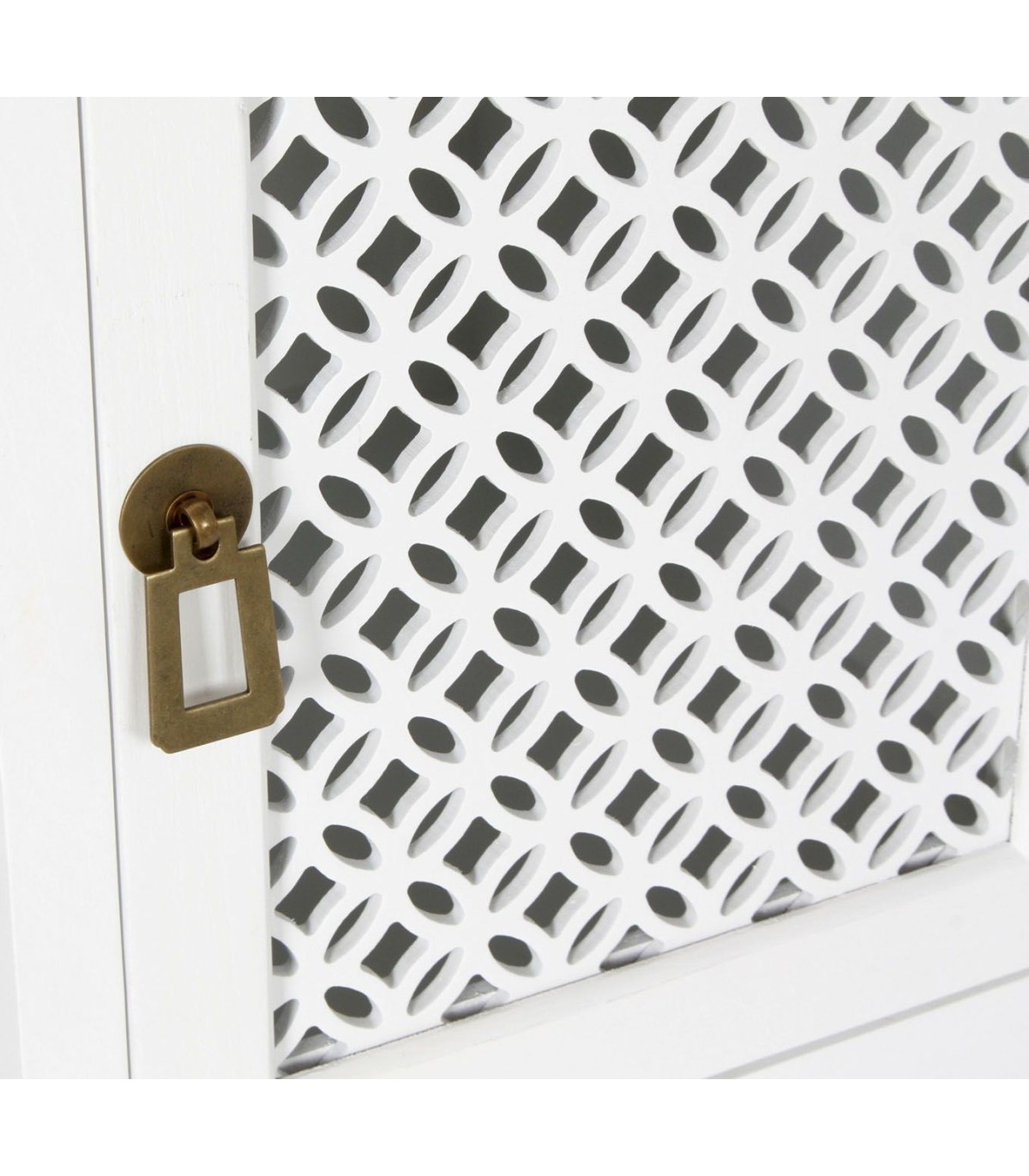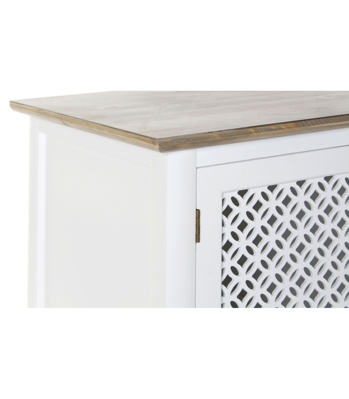 • Acabado, estructura lacada en blanco, tapa en nogal paulonia, tiradores latón.