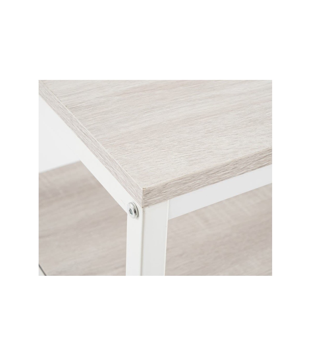 • Acabado, metal blanco, madera natural.