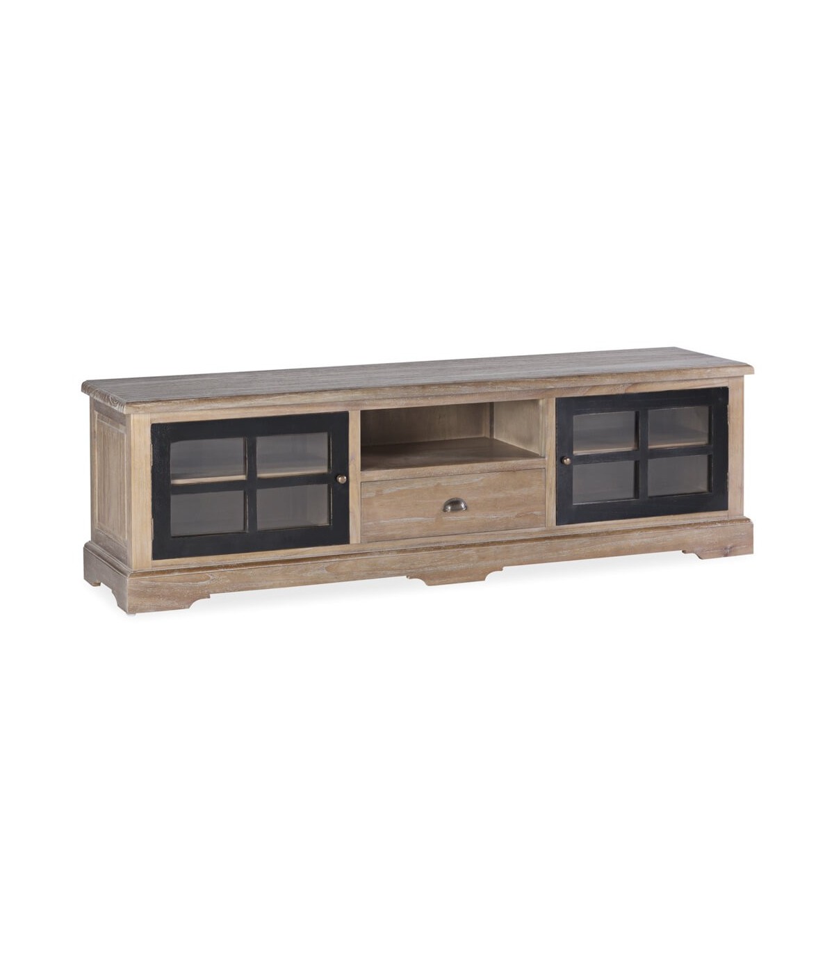 Mueble de TV, puertas de  vitrina con celosía, 2 puertas de cristal, 1 cajón, estilo colonial.