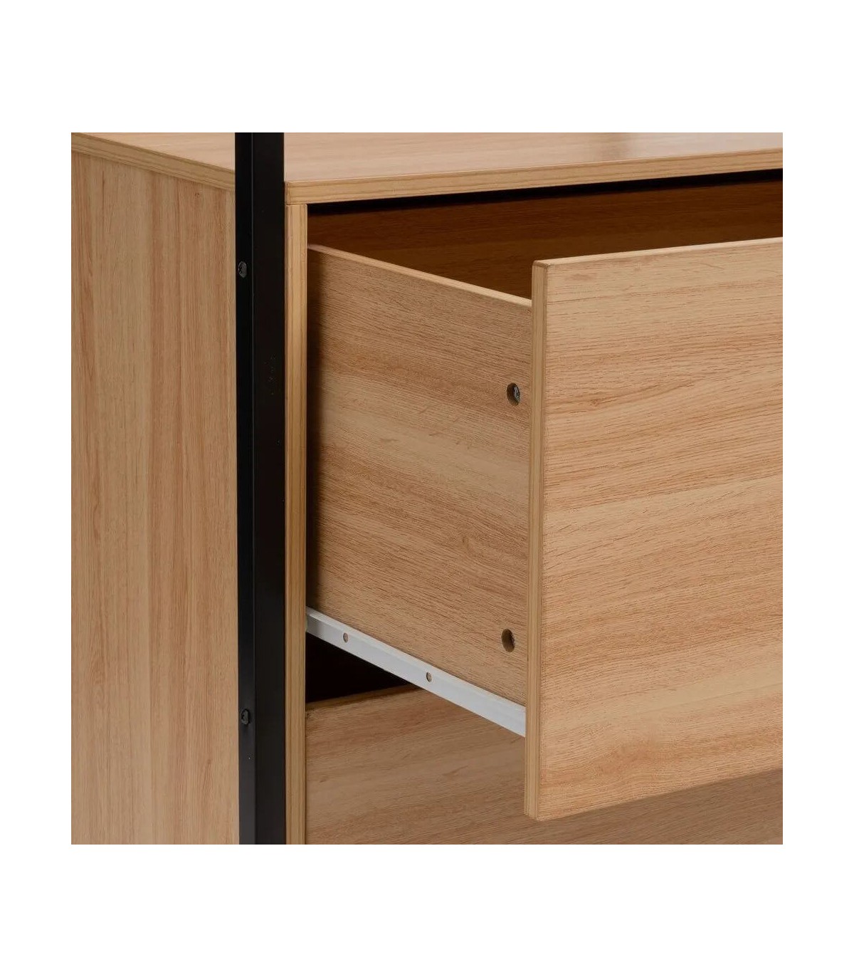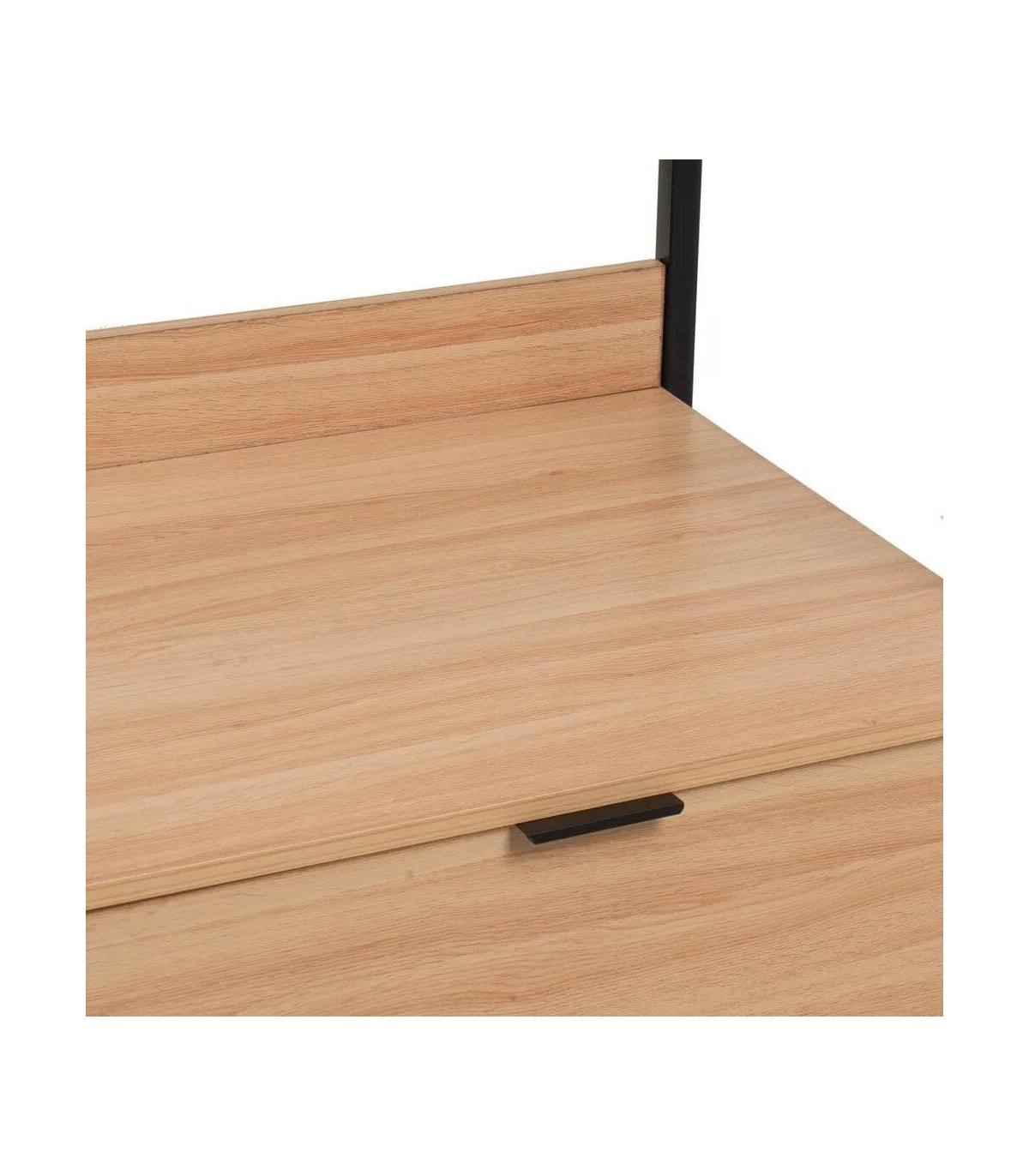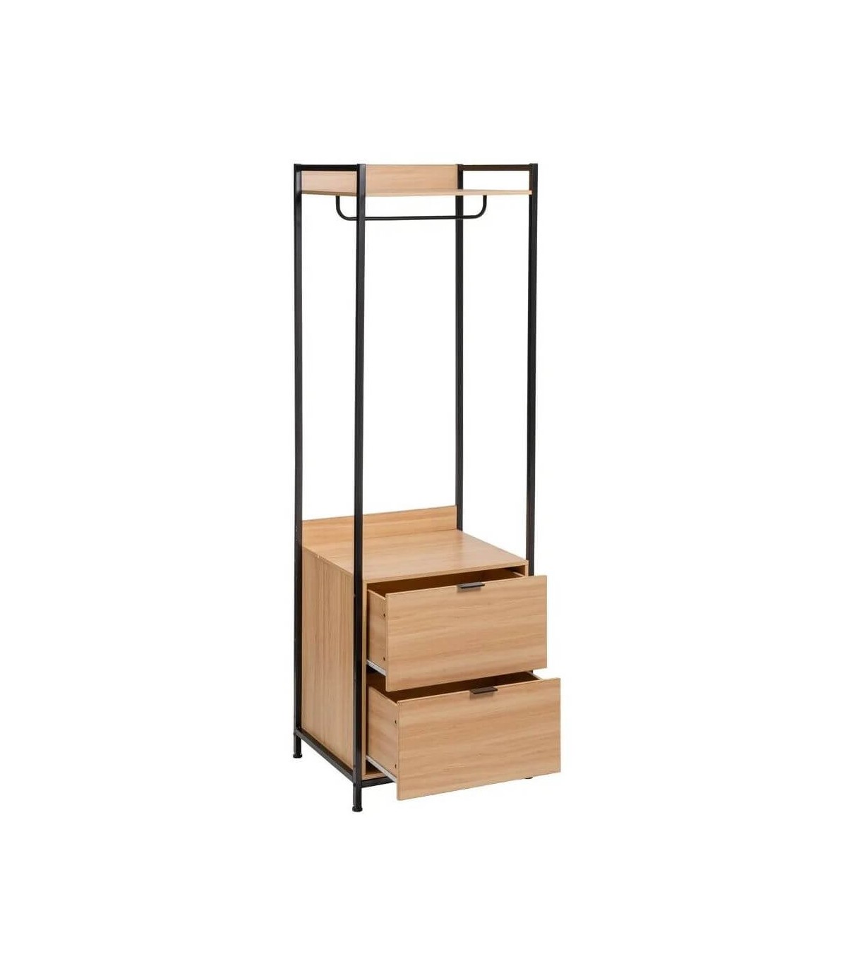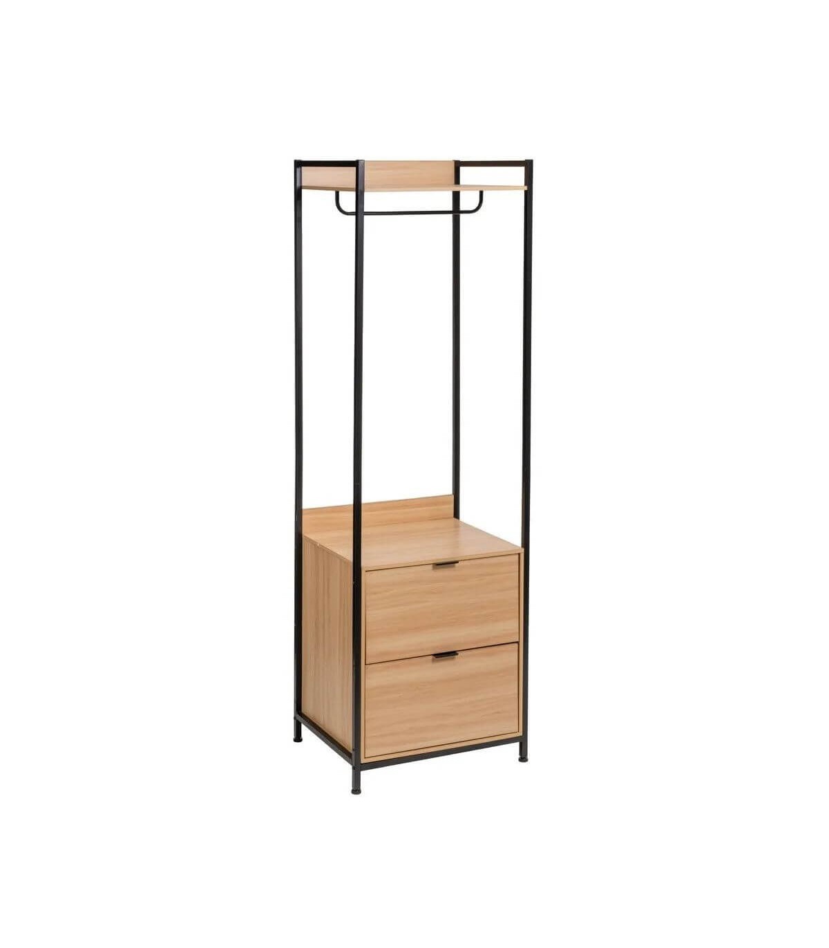 Dale un toque moderno y versátil a tu dormitorio con este armario ropero modular. Su estructura en melamina de imitación haya natural y detalles en metal negro aportan un estilo industrial y contemporáneo que combina con cualquier decoración.