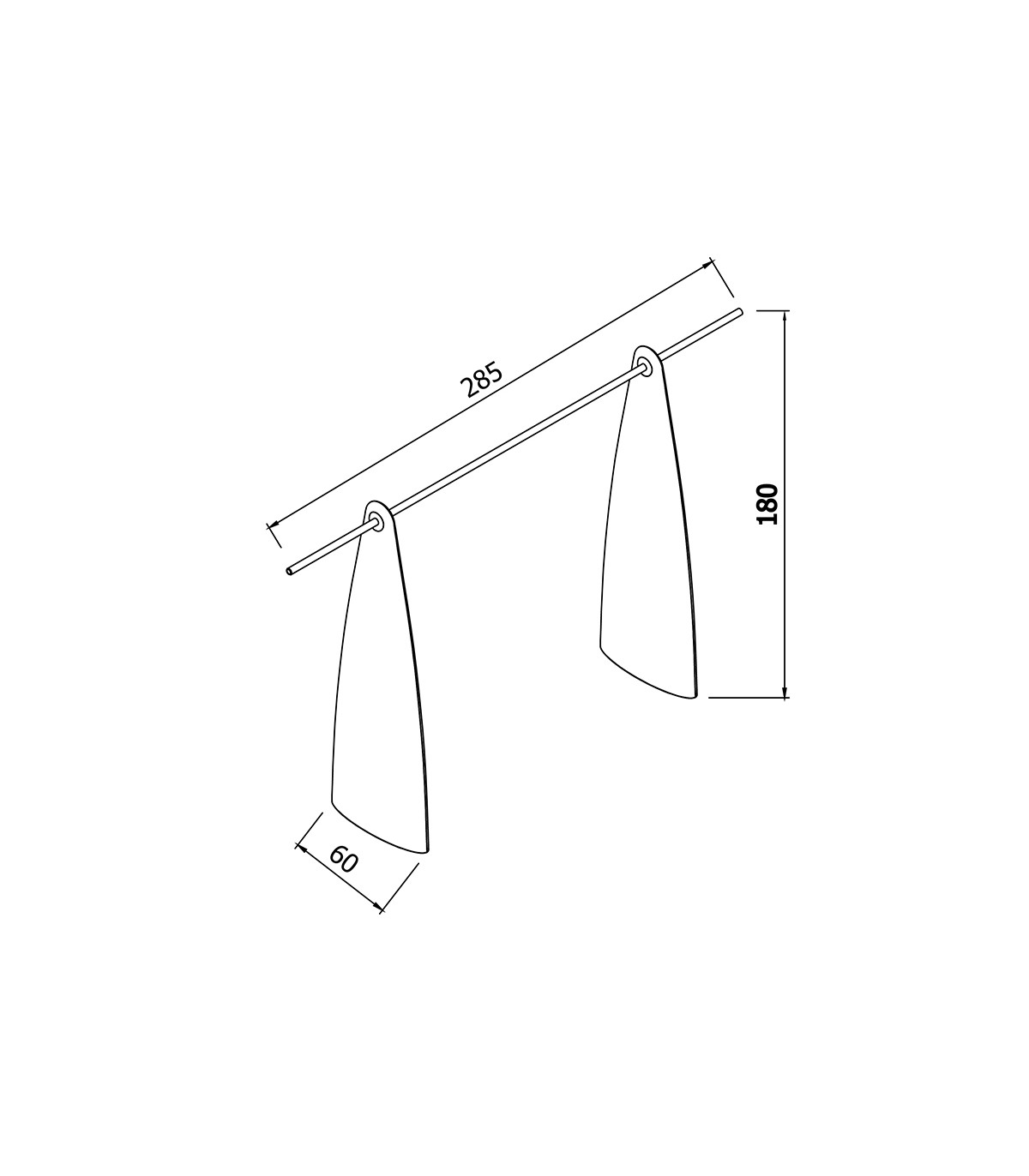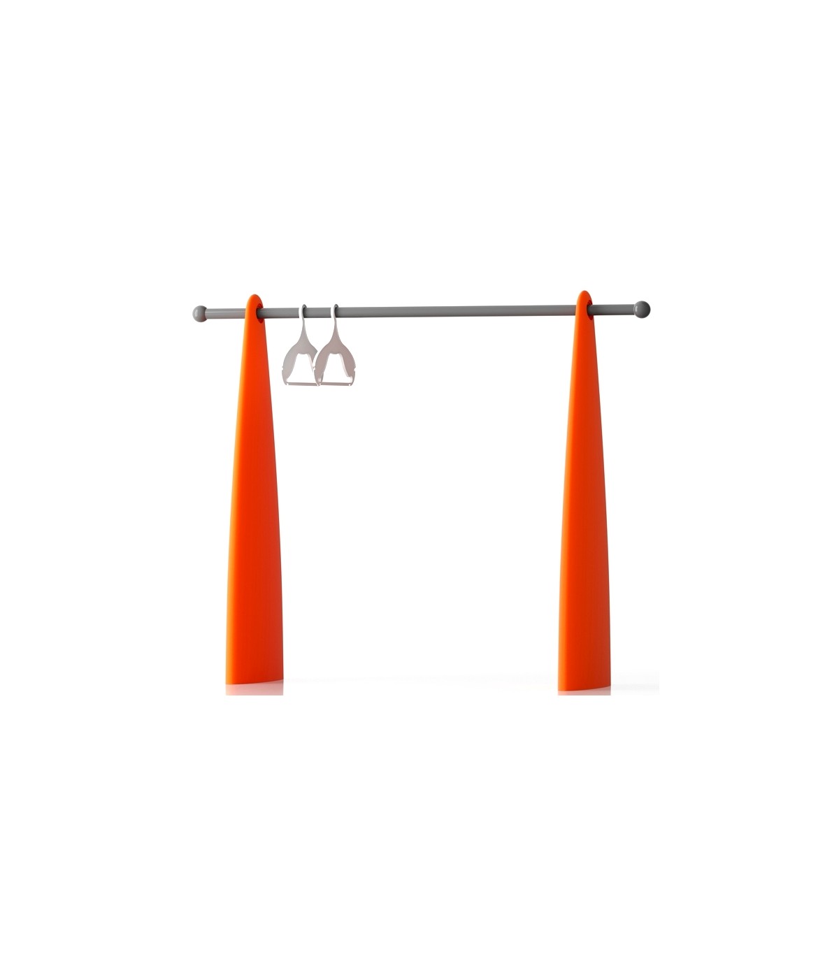 Se compone de 2 elementos verticales, disponibles en blanco o naranja, y una barra de colgar de color aluminio.