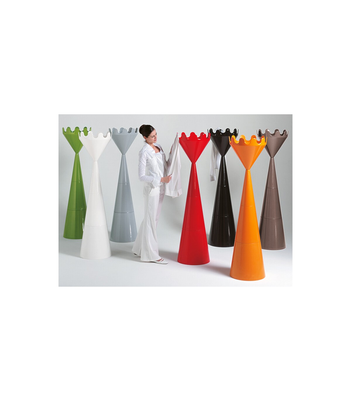 Perchero de pie muy original realizado en polietileno lacado en naraja brillo, perfecto para ambientes modernos, a su vez es un perchero que es un elemento de decoración, con gran estabilidad por su peso, si buscas un perchero de pie diferente este puede ser el tuyo, existe en 8 colores diferentes.