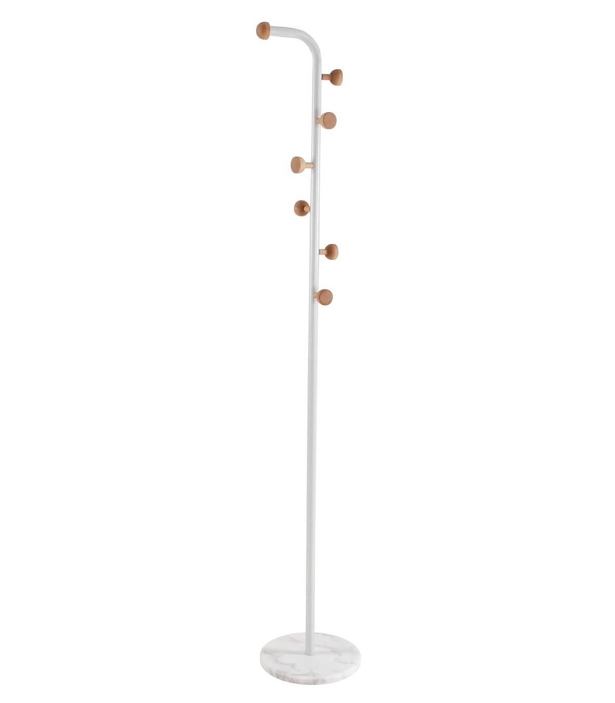 PERCHERO DE PIE 34 Ø X 175 CHAKE METAL Y MARMOL BLANCO MADERA NATURAL