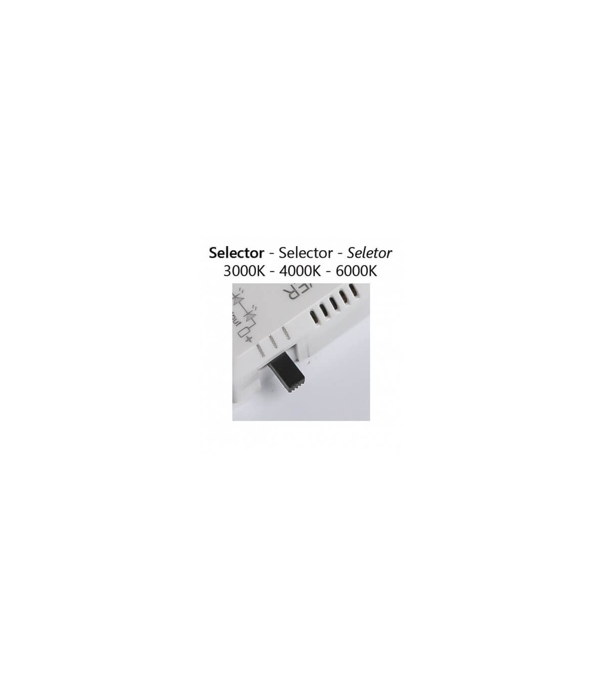 Acabado, blanco y plata. Posee led integrado, 72 W de potencia, 4680 lúmenes y con tres temperaturas regulables de luz mediante interruptor en el mismo plafón de 3000º, 4000º o 6000º.