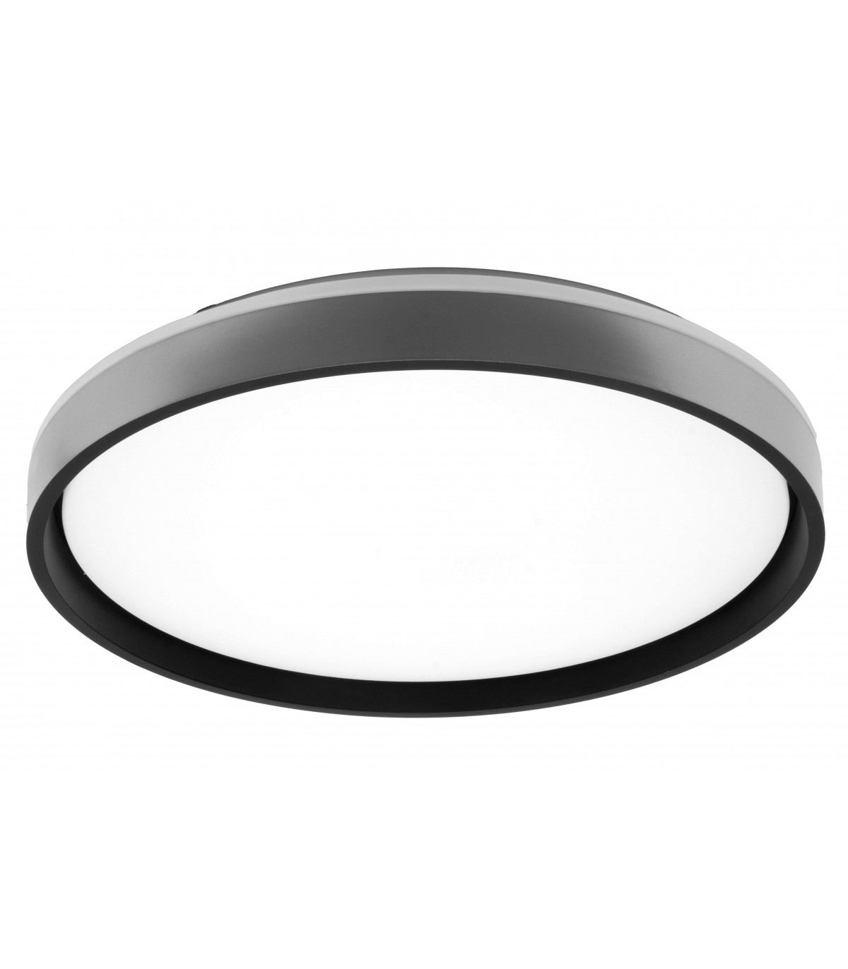 Plafón redondo realizado en metal negro y plata y policarbonato blanco, de diseño contemporáneo, un acierto seguro.