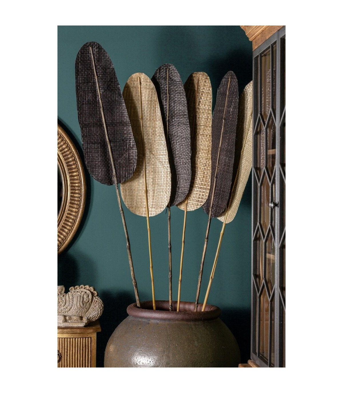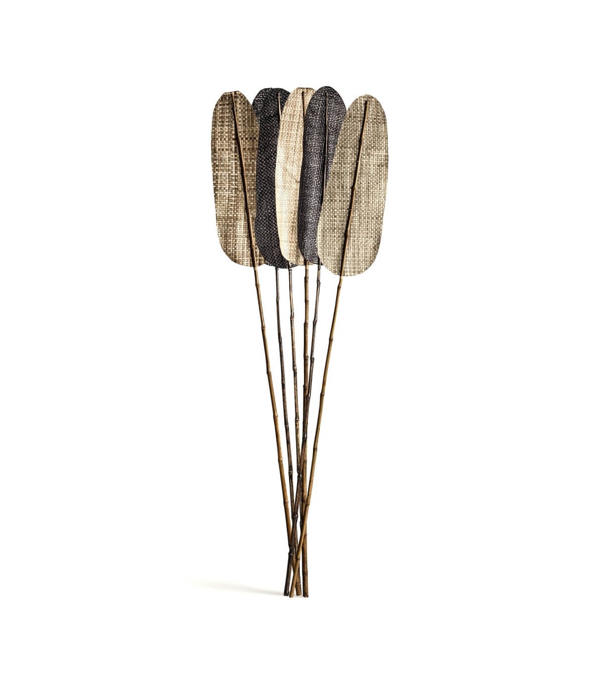 Set de 6 ramas decorativas forma de pay pay realizadas en bambú natural y fibra natural teñida en color negro y natural, se pueden poner juntas o por separado dependiendo el volumen que quiera conseguirse, ramas altas, perfectas para darle movimiento a un rincón soso.