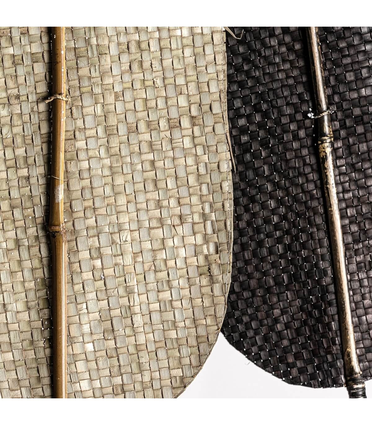• Acabado, artesanal, bambú natural ,fibras naturales teñidas de negro y acabado natural.