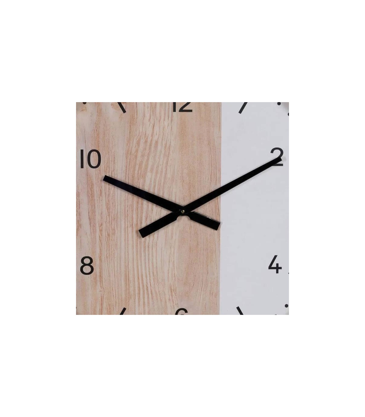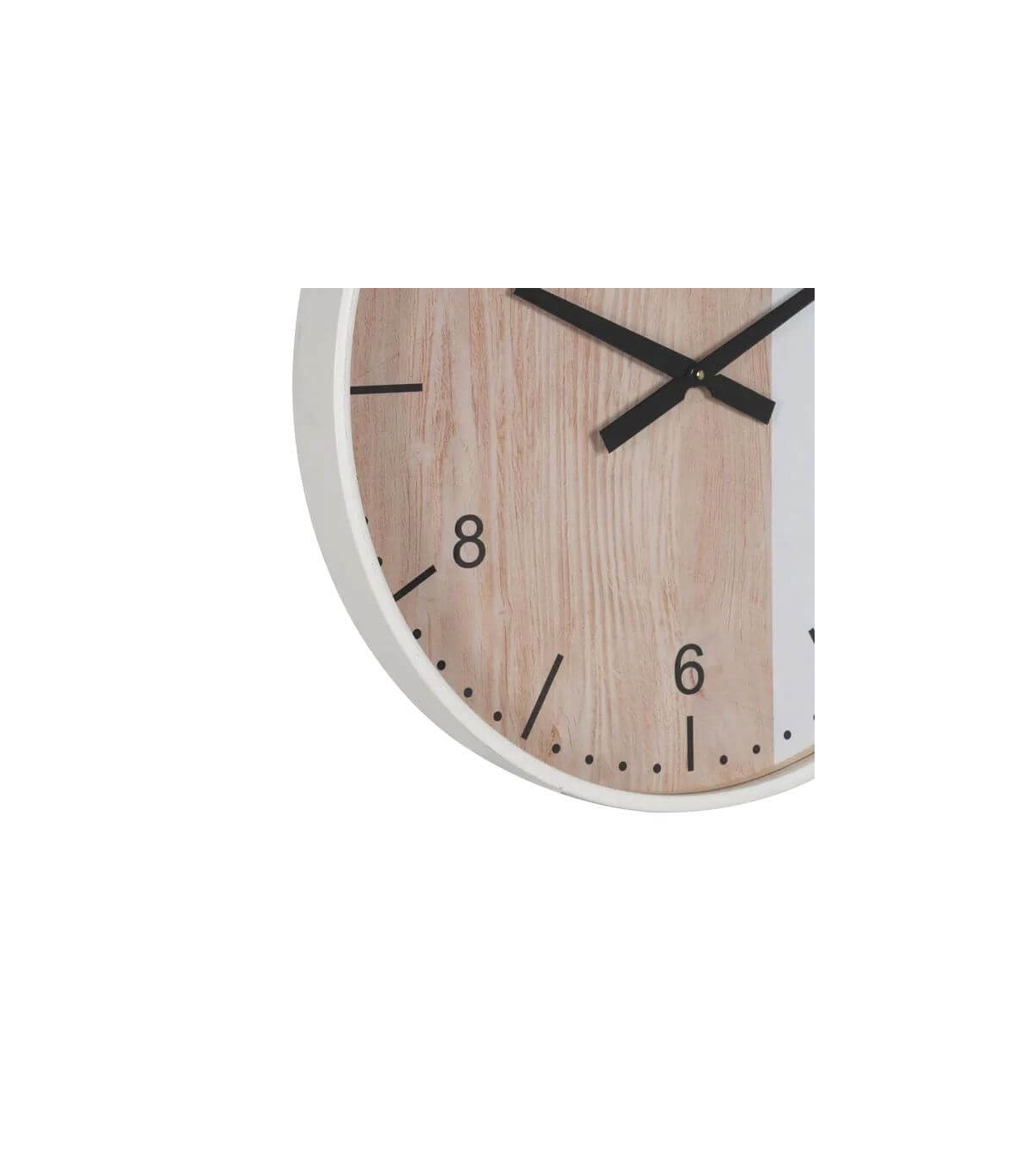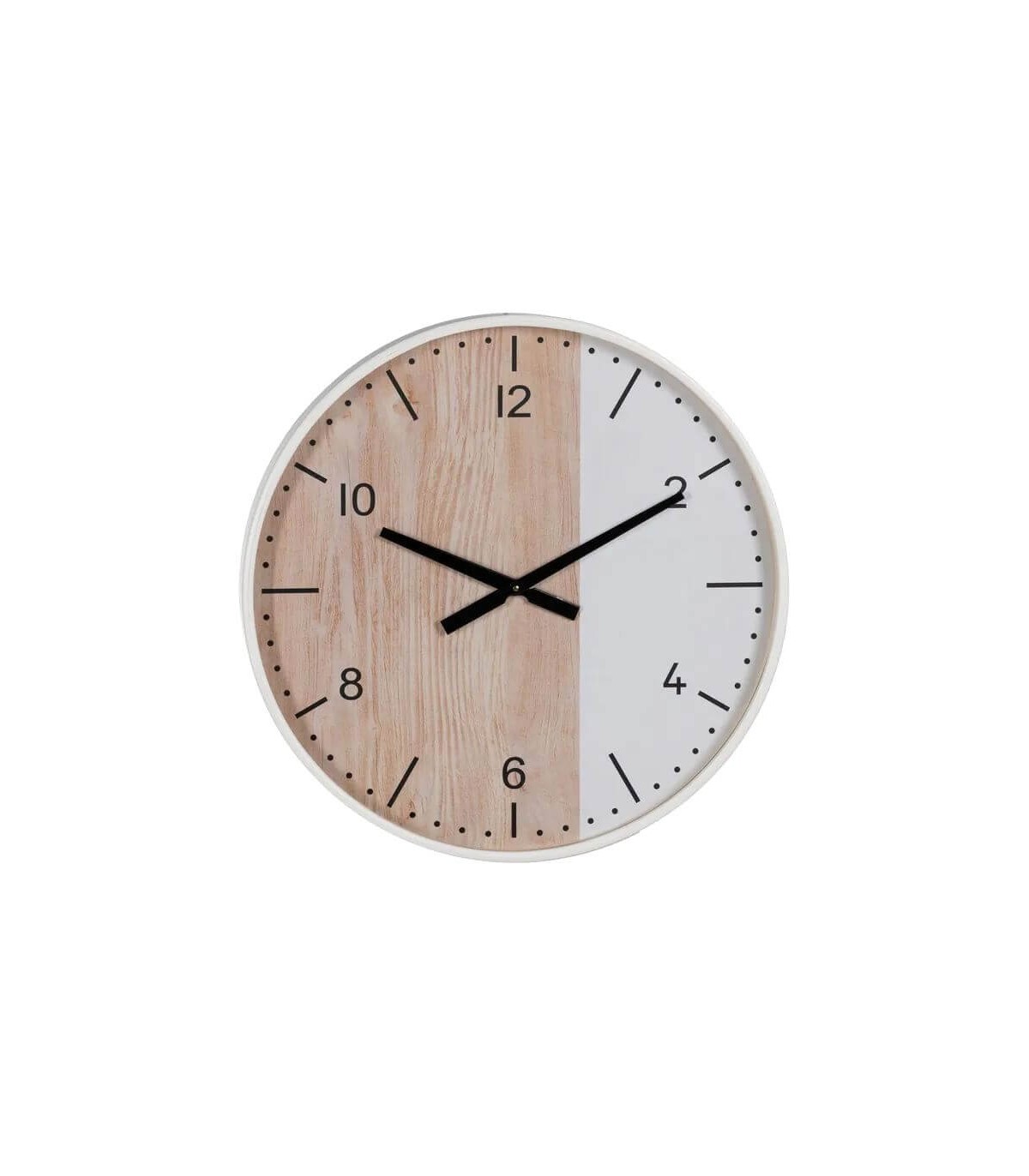 Reloj de pared grande realizado en madera natural y color blanco con el detalle de las manecillas en negro, perfecto para el salón o despachos.