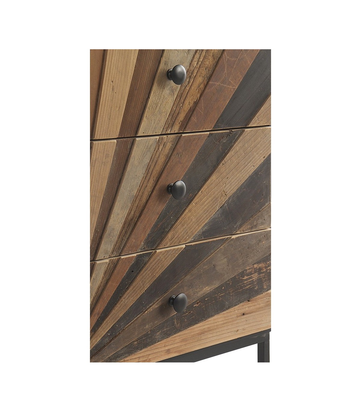 • Acabado, metal negro, madera acabada vintage con lamas en distintos colores.