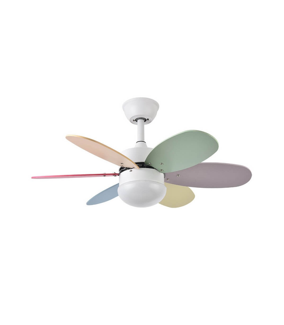- Acabado, metal blanco, aspas reversibles en colores intensos o pasteles.