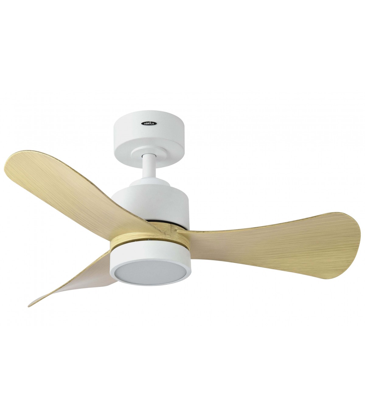 Ventilador zeple de color blanco con 3 aspas en abs imitación roble natural combinado con metal blanco. Un diseño muy moderno para combinar con los nuevos estilos de decoración.