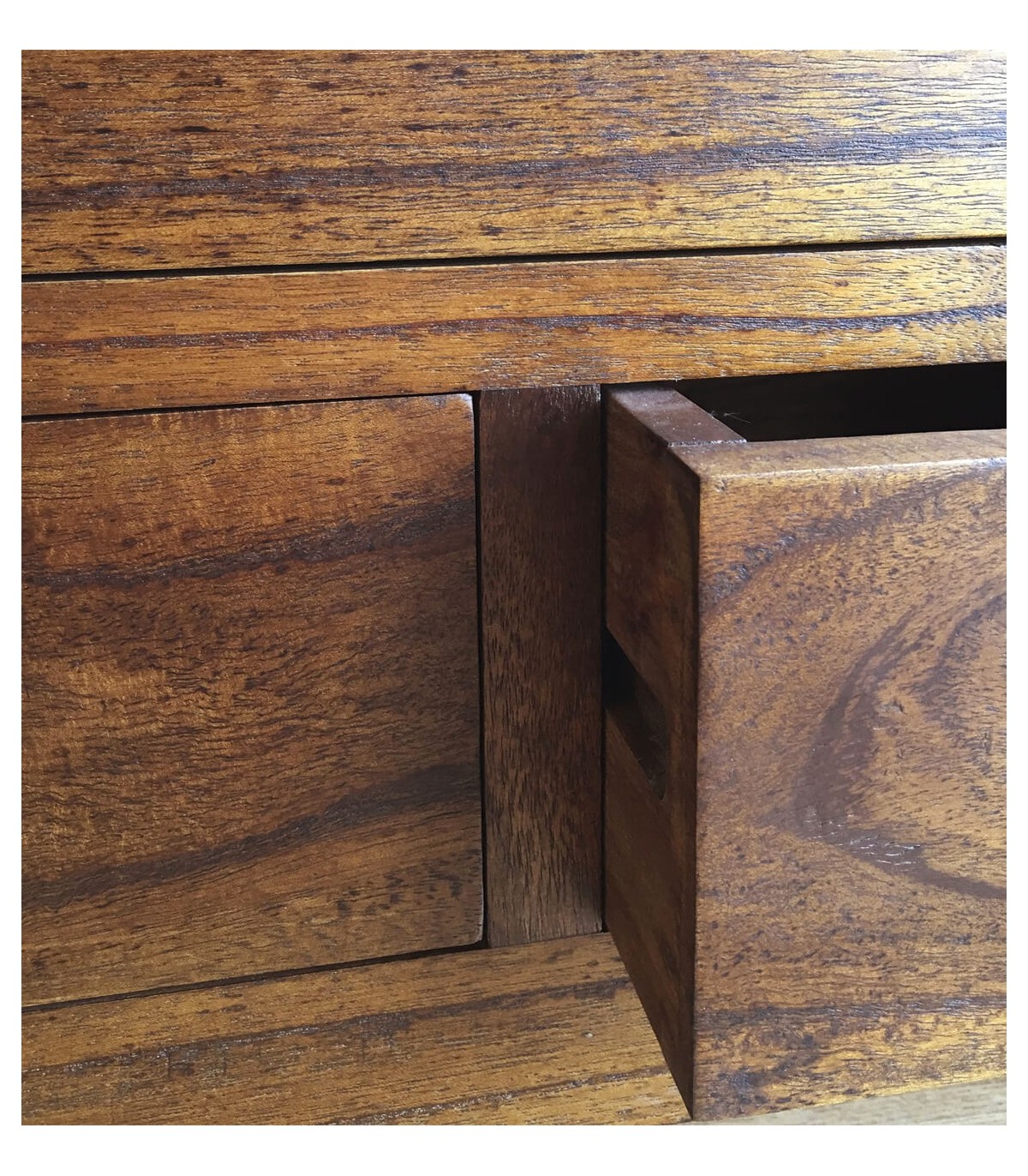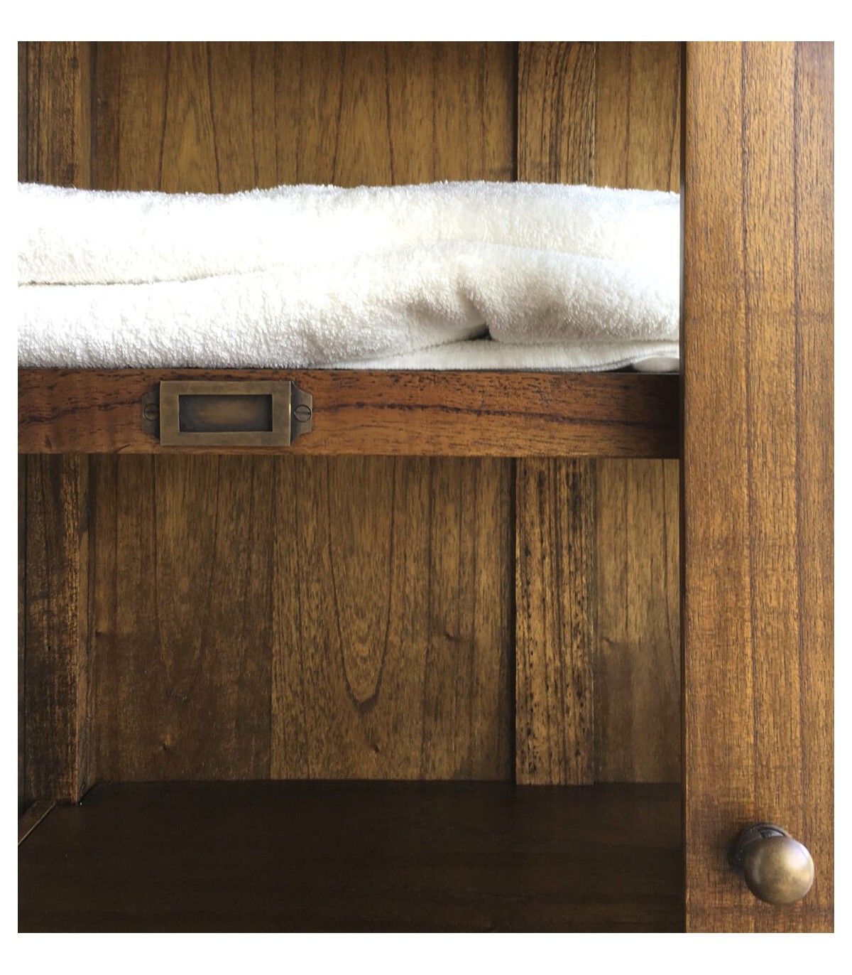 - Acabado, madera maciza acabado teca, tiradores bronce.