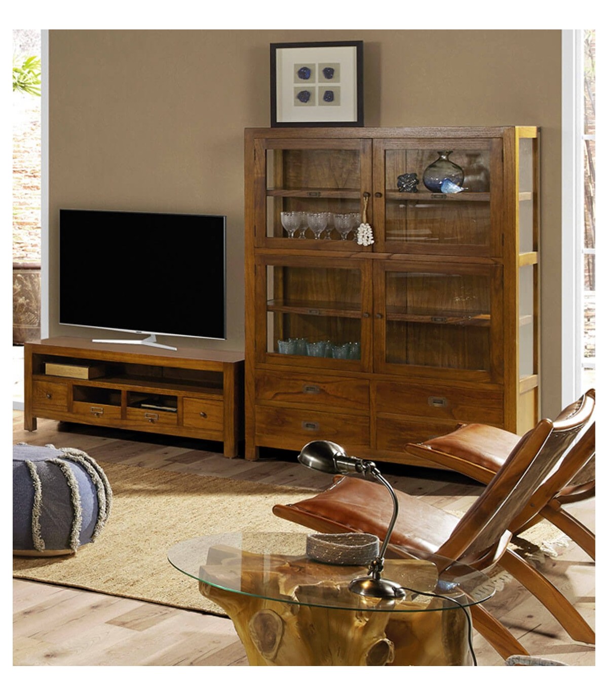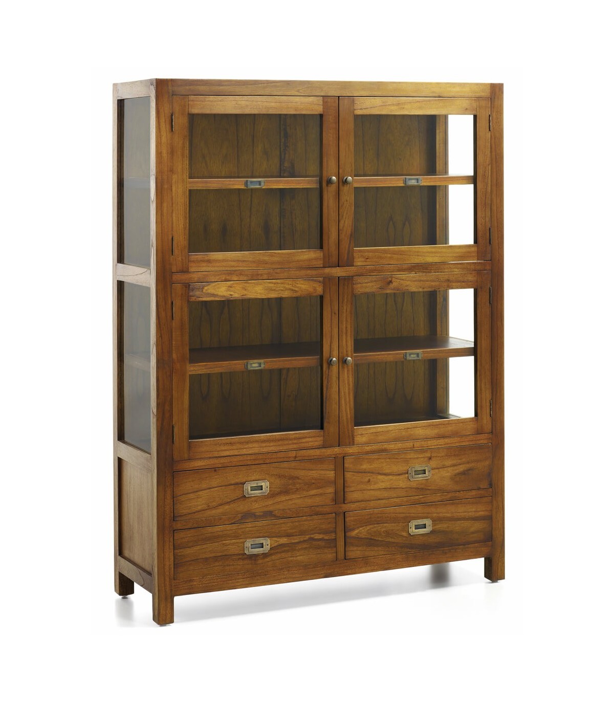 Vitrina  de nuestra colección de muebles Star, Una colección realizada en madera maciza de mindi de estilo colonial, una gran colección con muebles para todas las zonas de tu casa, de líneas rectas y atemporales un mueble que aporta calidez y presecia, haz tu composición con los muebles auxiliares o con su modular Combi, donde podrás diseñar tu mueble principal.