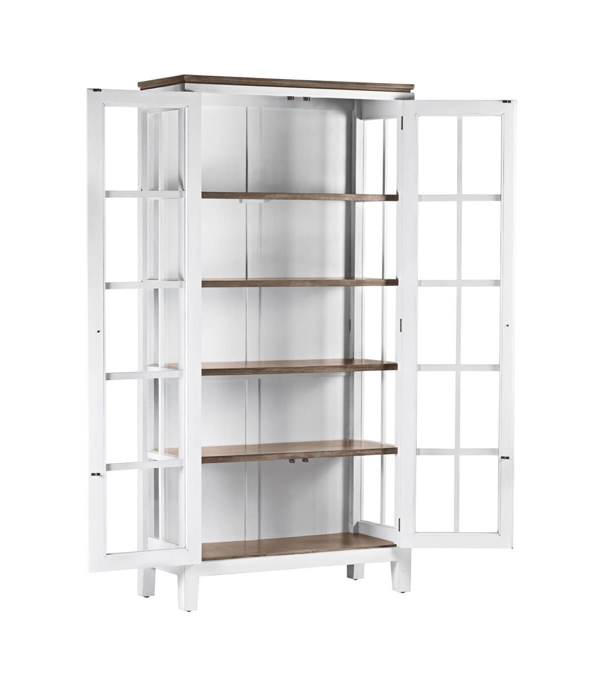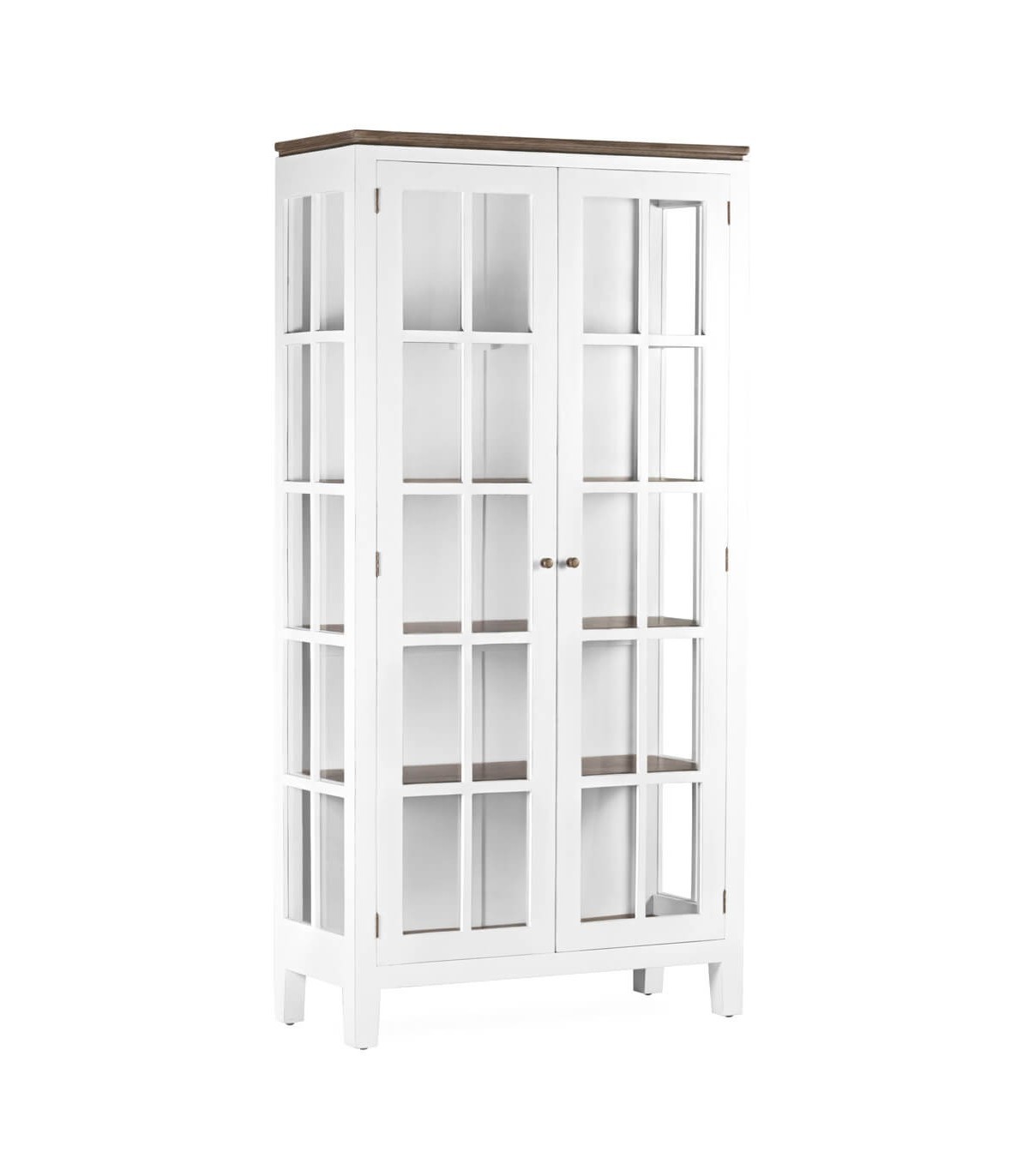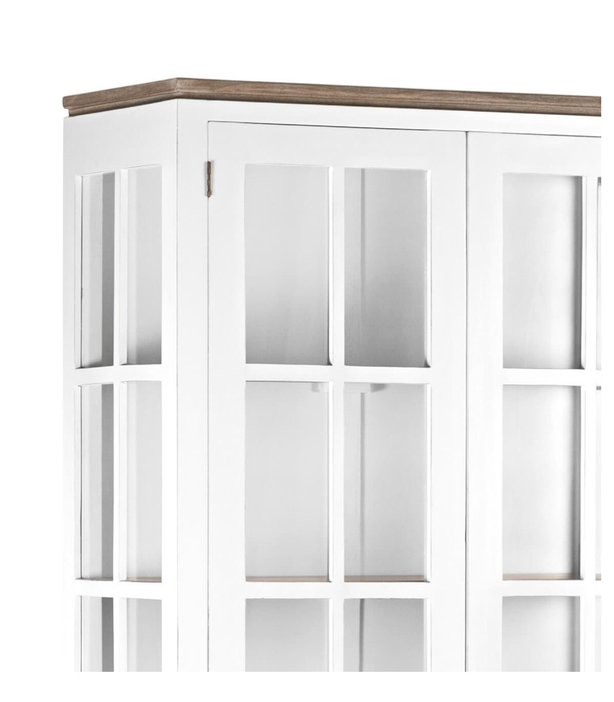 Vitrina de nuestra colección Everest, una colección realizada en madera maciza de caoba lacada en blanco con los tiradores en bronce, algún modelo está combinado con la madera de caoba en su color, un mueble a temporal que encajará perfectamente en cualquier tipo de decoración, como mueble singular o conjuntándolo con muebles de la colección.