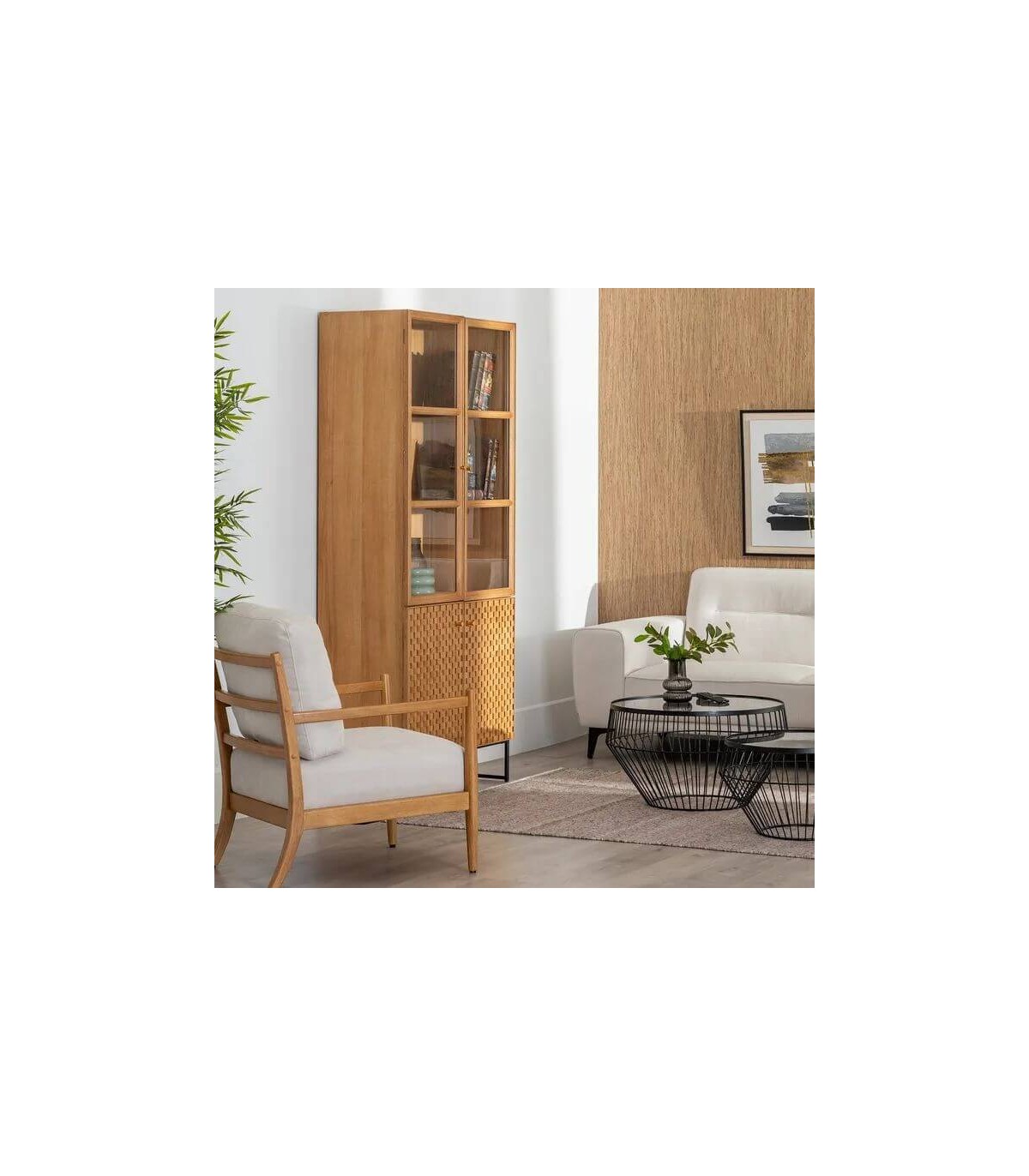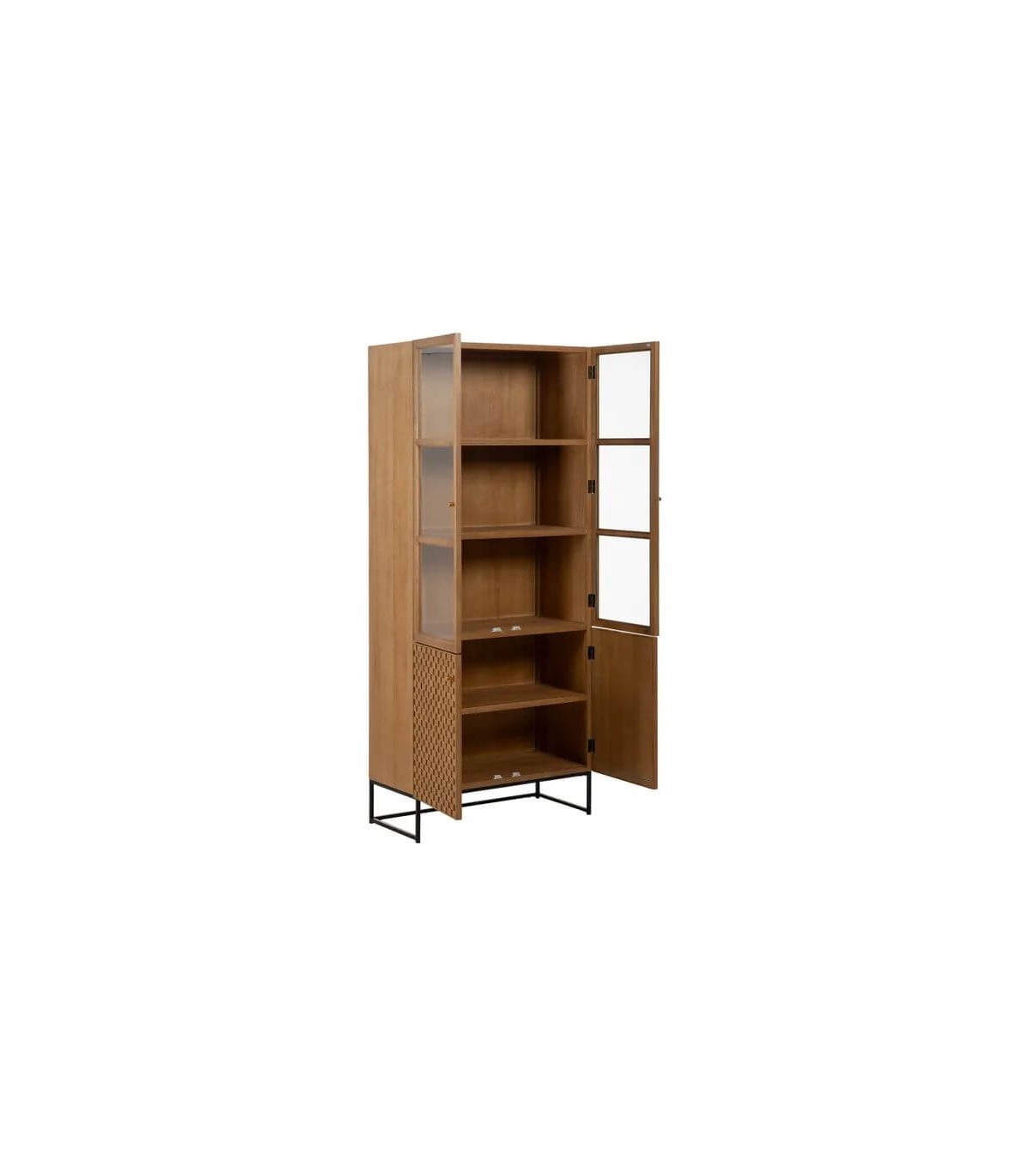 VITRINA 85 X 43 X 198 PANAL MADERA DM FRESNO NATURAL METAL NEGRO