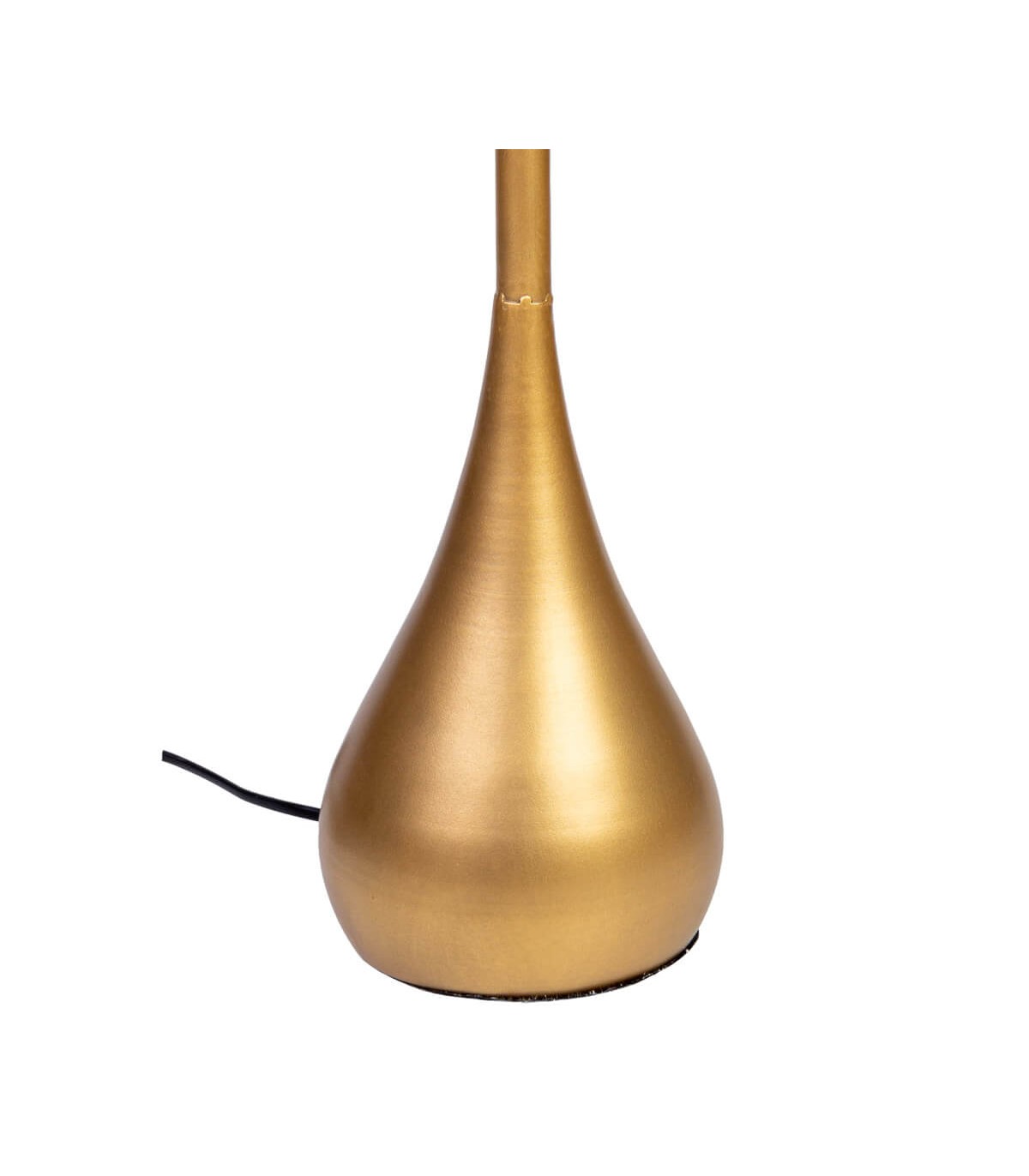 Esta lámpara de sobremesa presenta una silueta alta y estilizada con cuerpo en forma de gota y pantalla cilíndrica acanalada, todo en acabado dorado satinado. Su estética art decó se combina con una presencia moderna y sofisticada, perfecta para destacar en salones, entradas o dormitorios contemporáneos. Ideal como punto de luz decorativo sobre una cómoda o aparador.