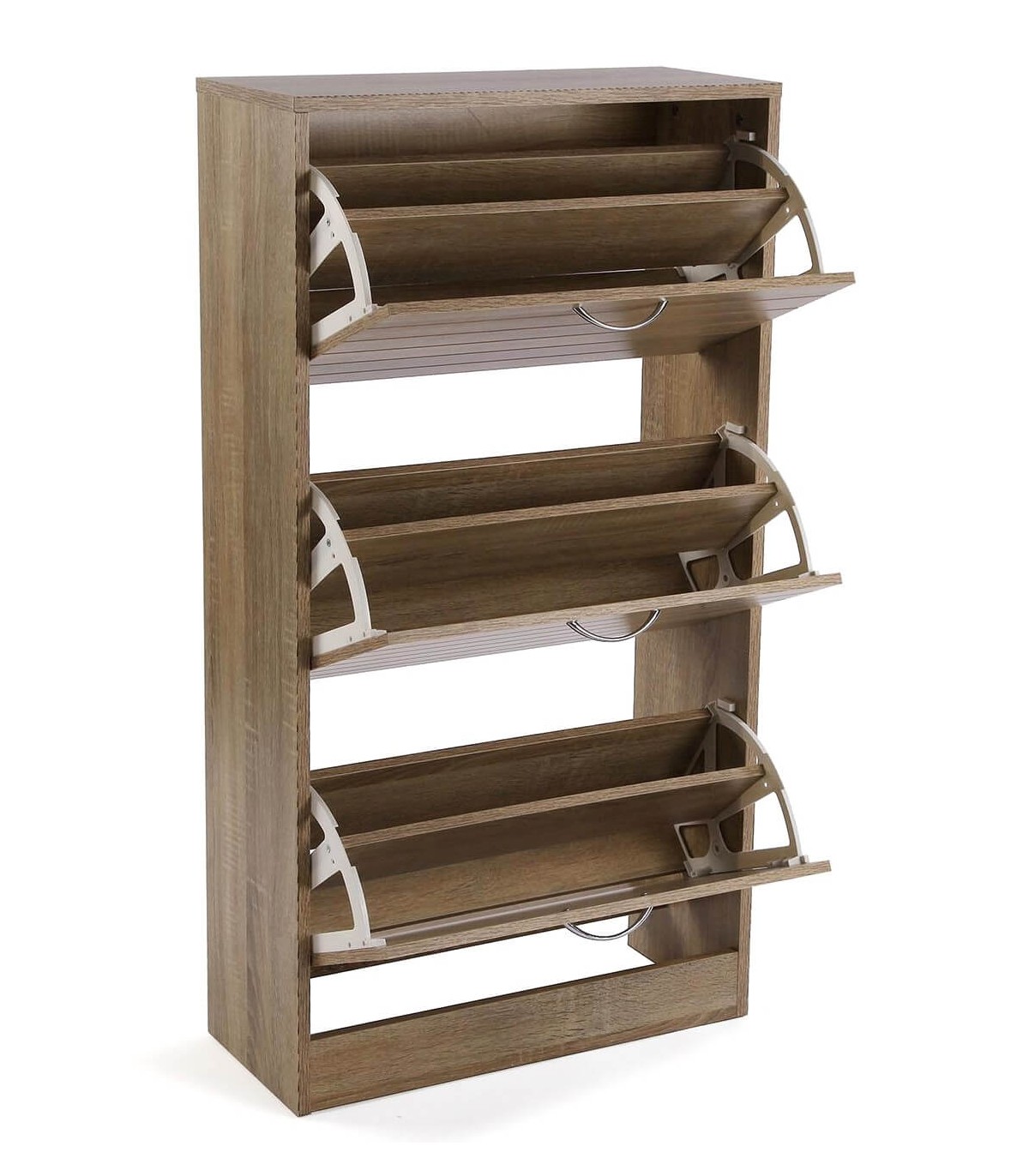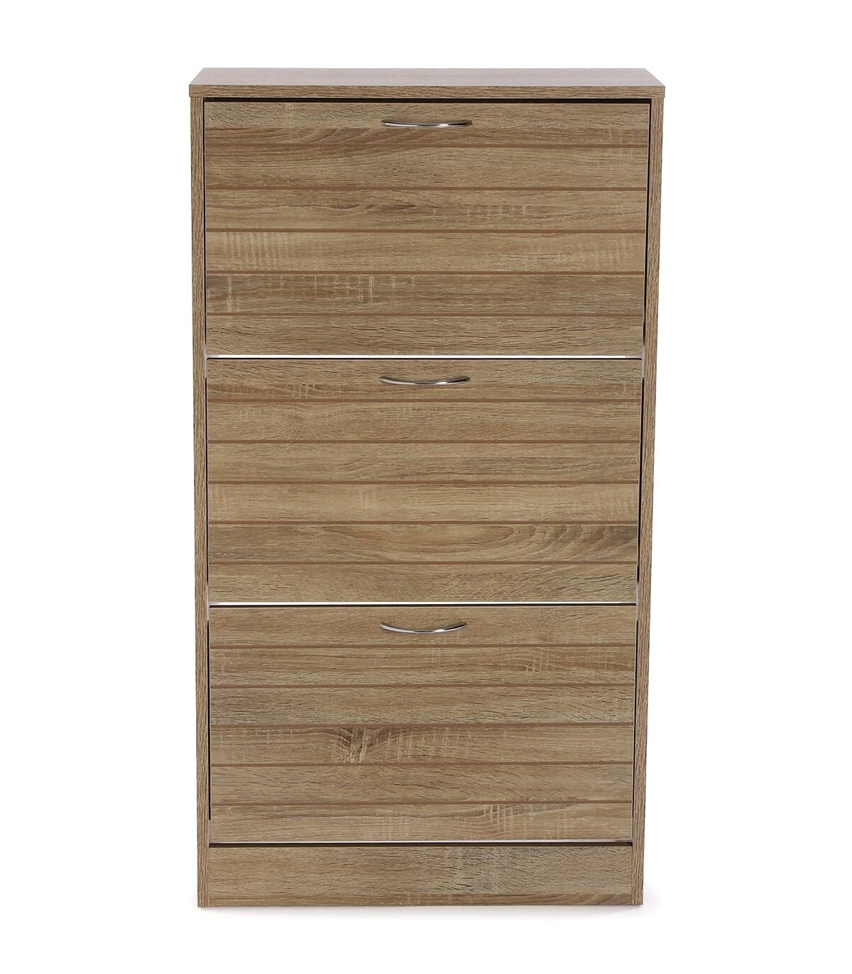 Mueble zapatero, realizado en melamina color roble con 3 zapateros doble, elegante y práctico, una mueble para quien busque una pieza de capacidad que ocupe poco espacio y sea funcional y decorativo.