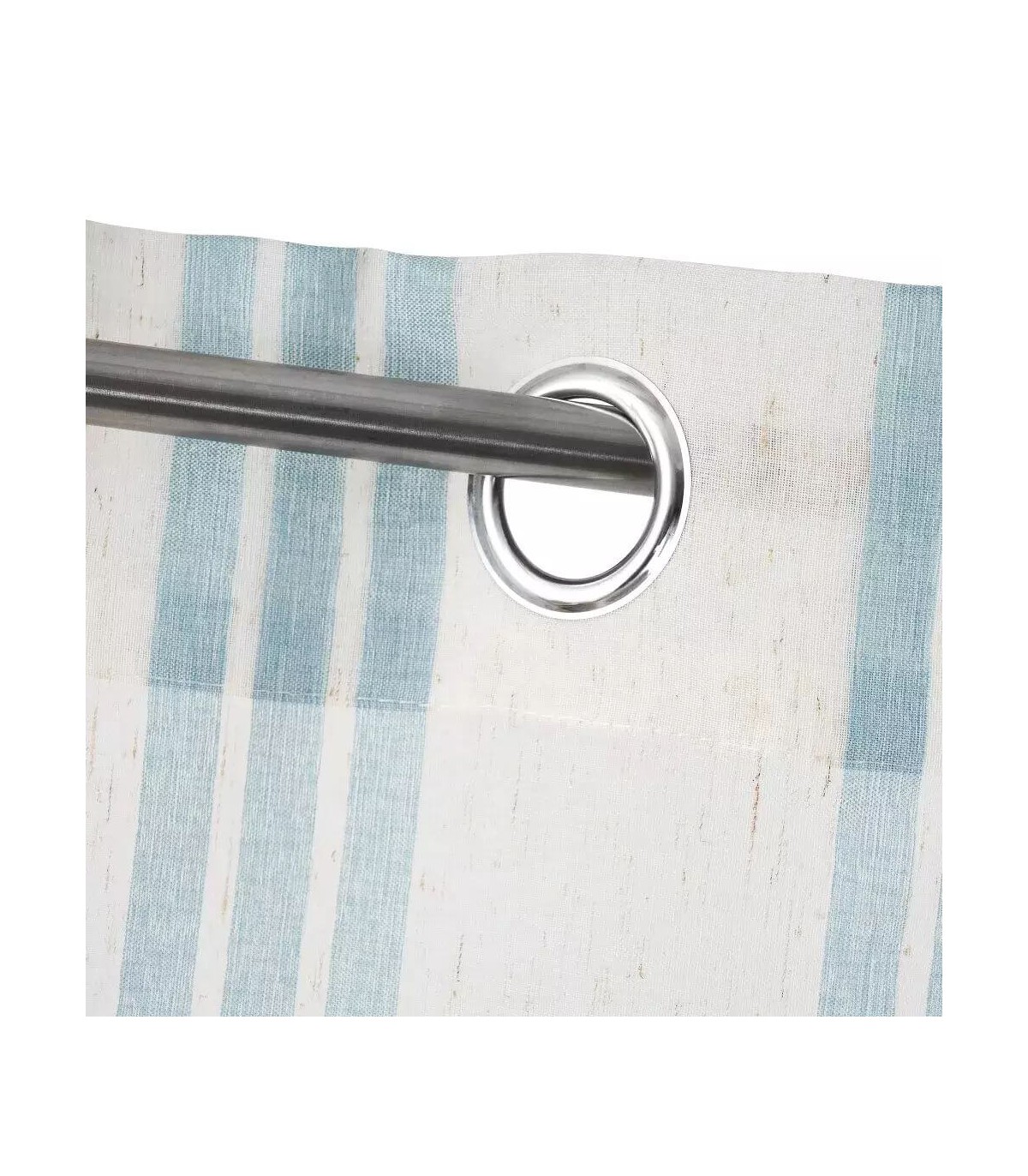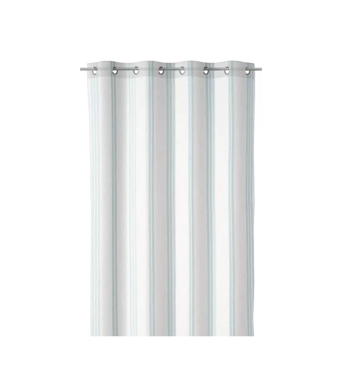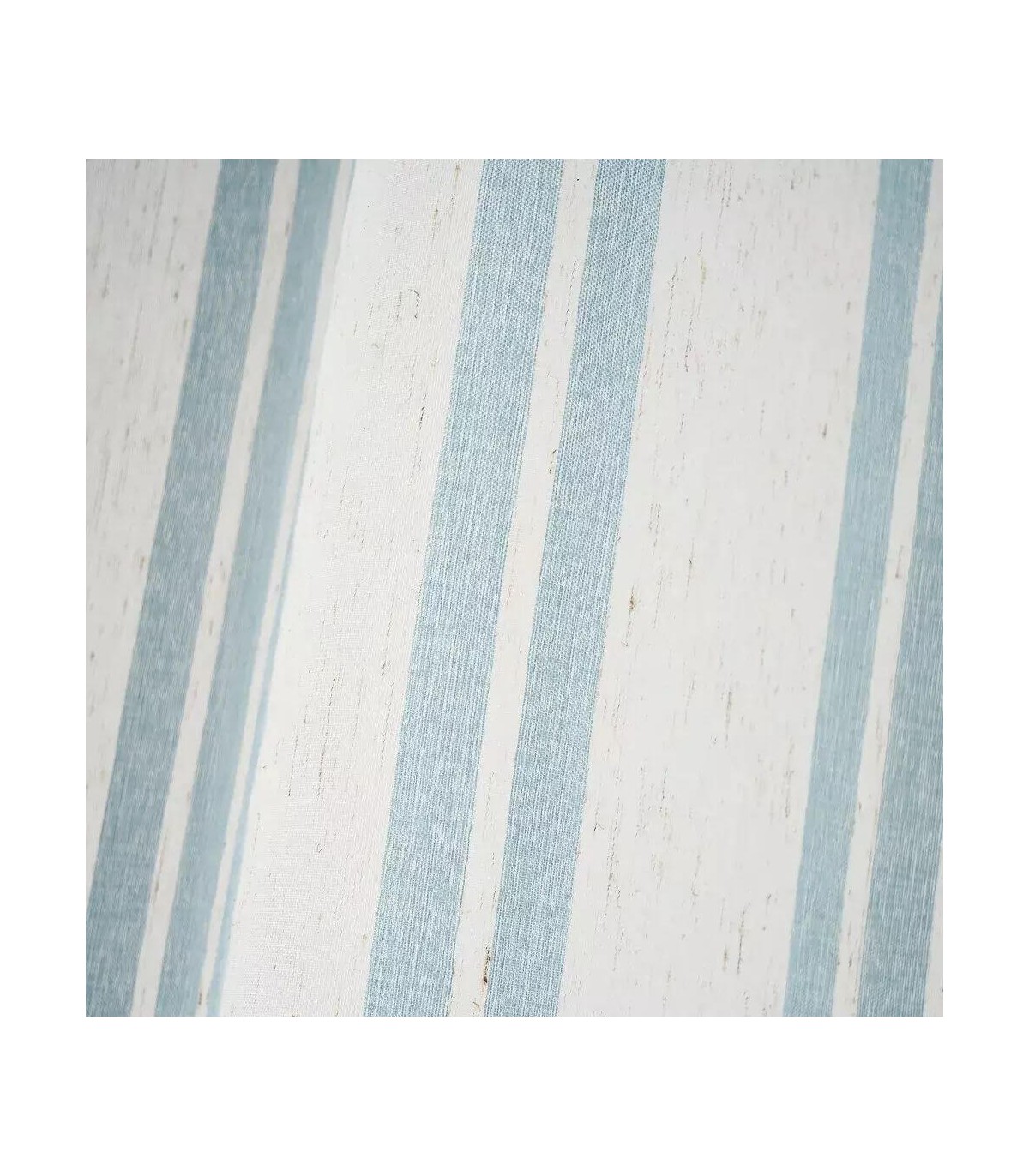 Cortina, realizada en lino y poliéster tejido en rayas de color blanco y azul, perfecto para decoraciones naturales, coloniales o contemporáneas.