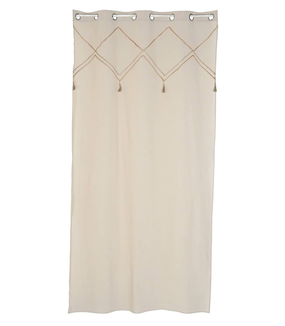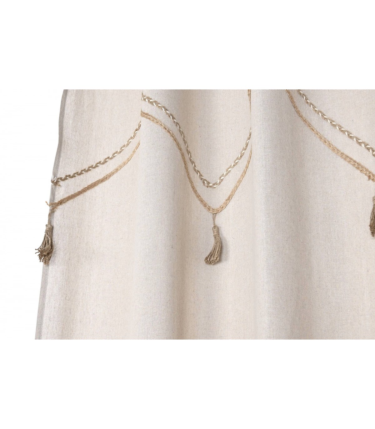 Aporta calidez y elegancia a tus espacios con esta cortina de algodón 100%, diseñada para quienes buscan un toque natural y acogedor. Su tejido en color beige con detalles de pasamanería en marrón y blanco la convierten en una opción versátil para cualquier ambiente.