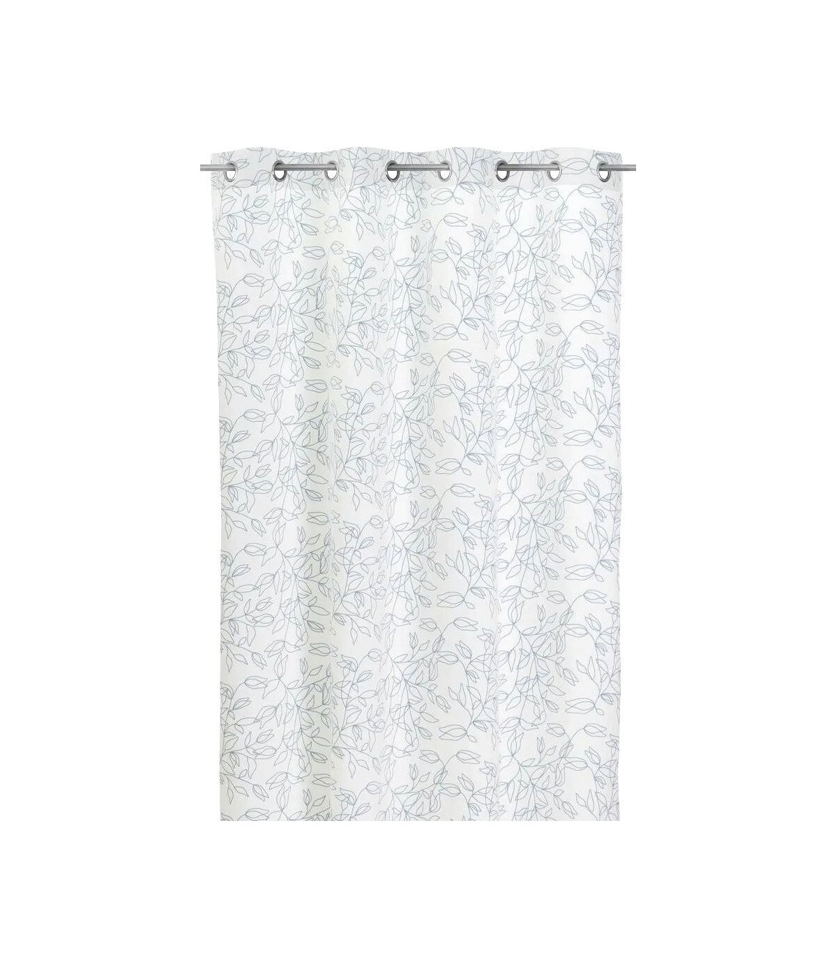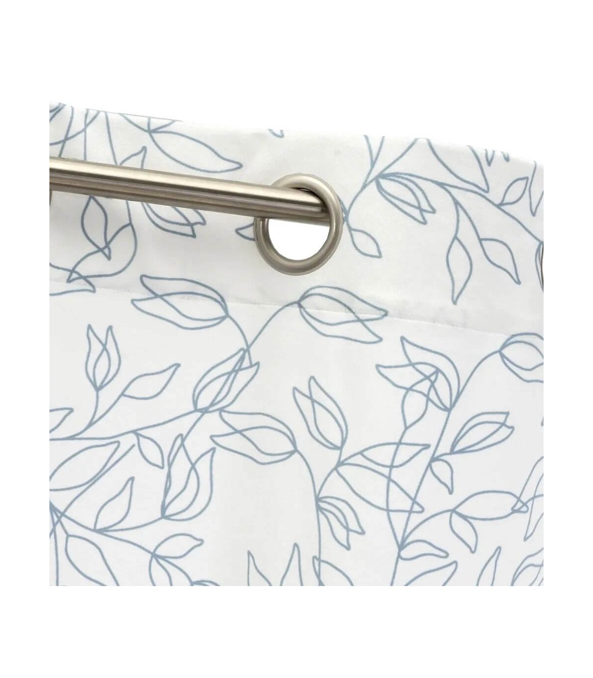 Cortina para colgar con barra opaca, terciopelo impreso con motivo lineal color blanco y azul, una cortina muy original.