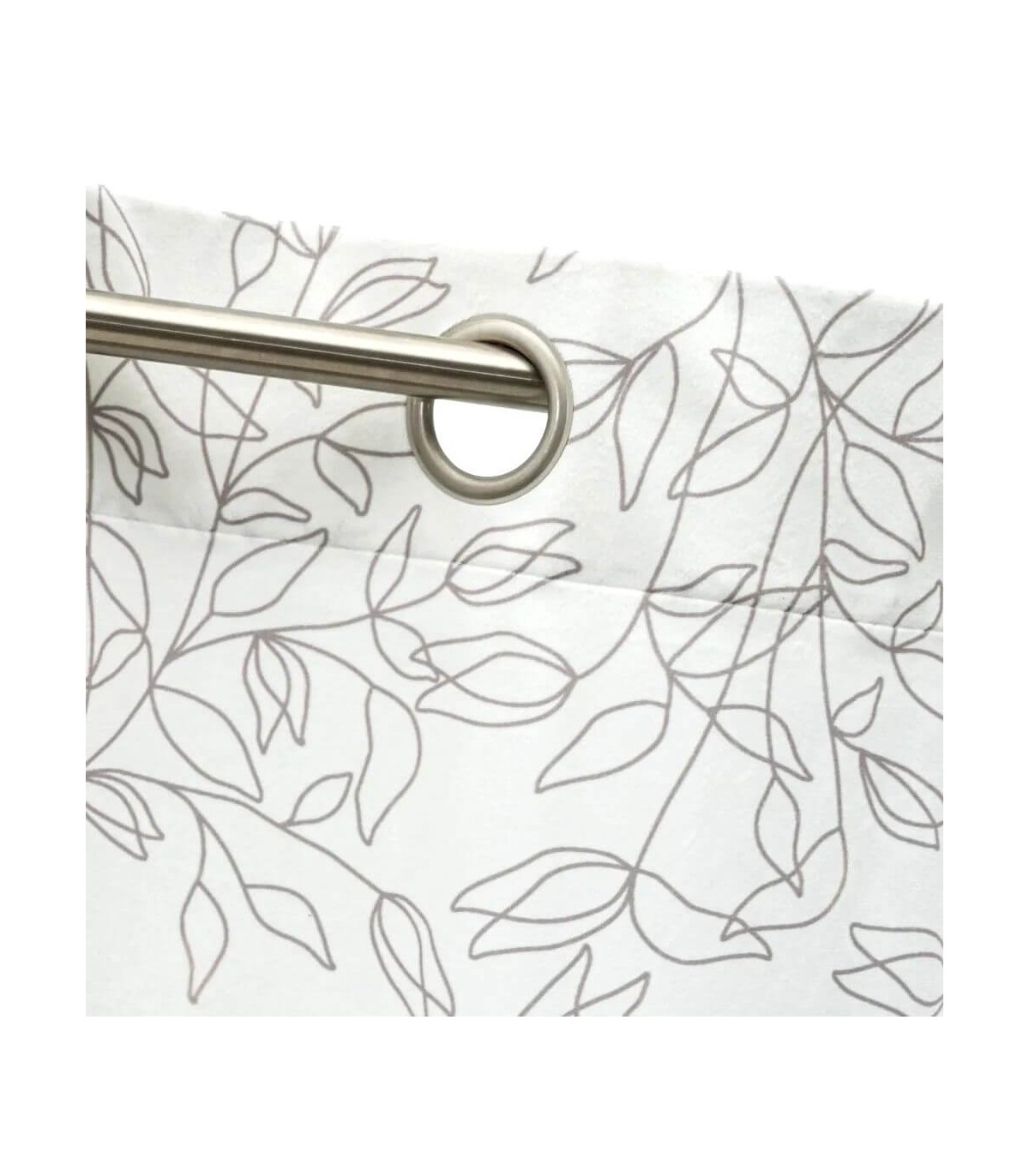 Cortina para colgar con barra opaca, terciopelo impreso con motivo lineal color blanco y gris, una cortina muy original.