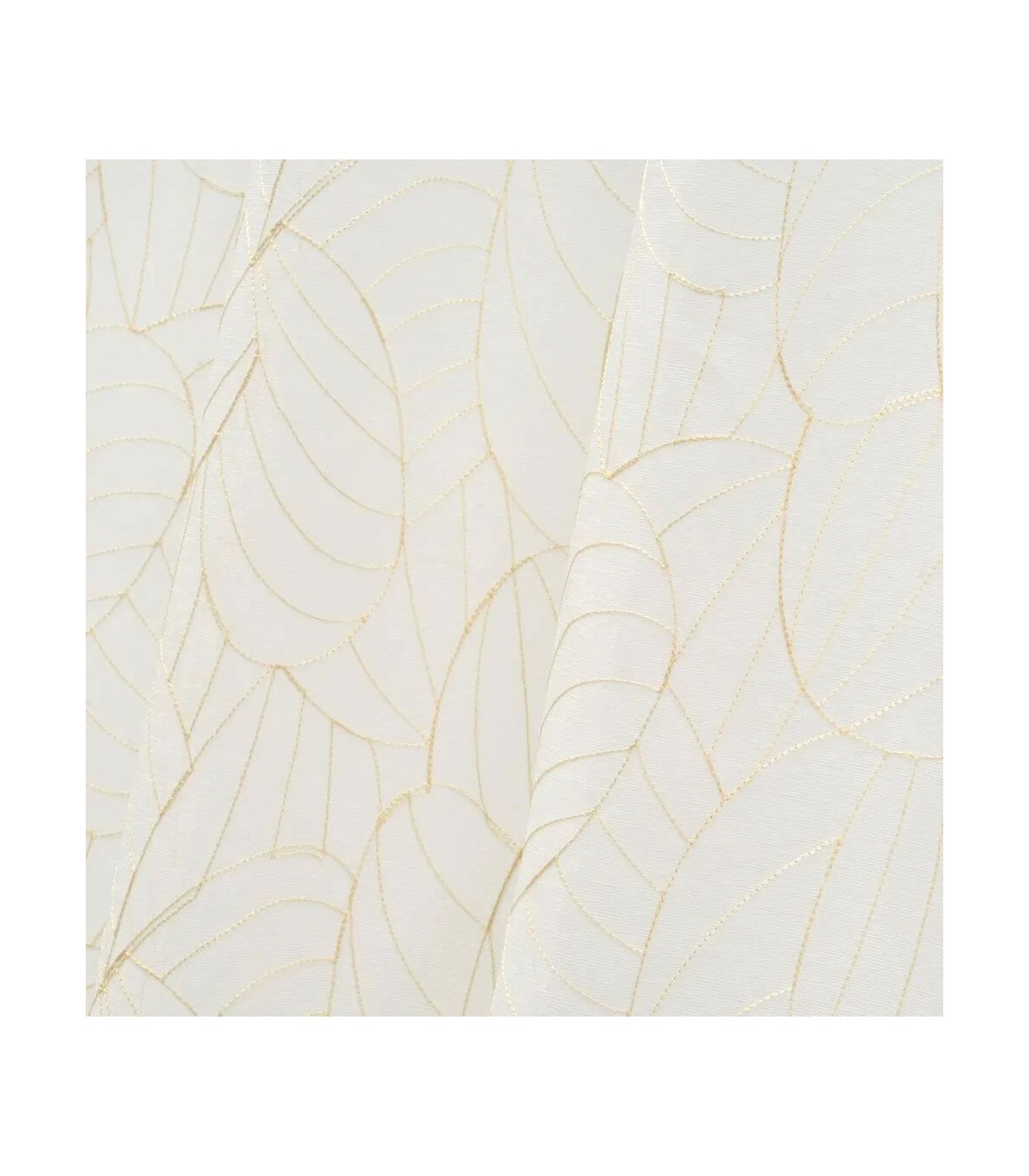 Visillo para barra semitransparente, realizado en color blanco con un bordado con motivos de hoja en beige, perfecto para decoraciones de estilo colonial.