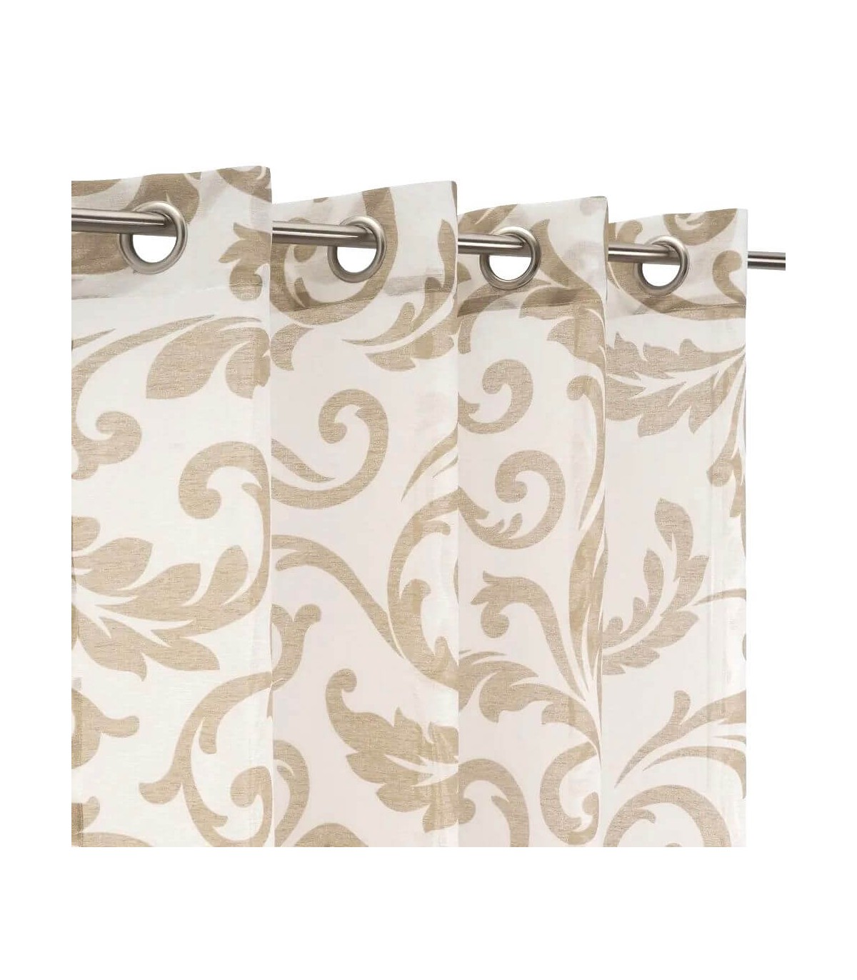 El estampado impreso en tonos blanco y marrón tiene un aire sofisticado y atemporal, que se adapta a diversos estilos de decoración como el clásico, rústico, vintage o incluso el moderno, añadiendo suavidad y textura al ambiente. Ideal para salones, dormitorios o comedores, este visillo se convierte en una opción versátil para dar un toque decorativo sin restar luz a los espacios.
