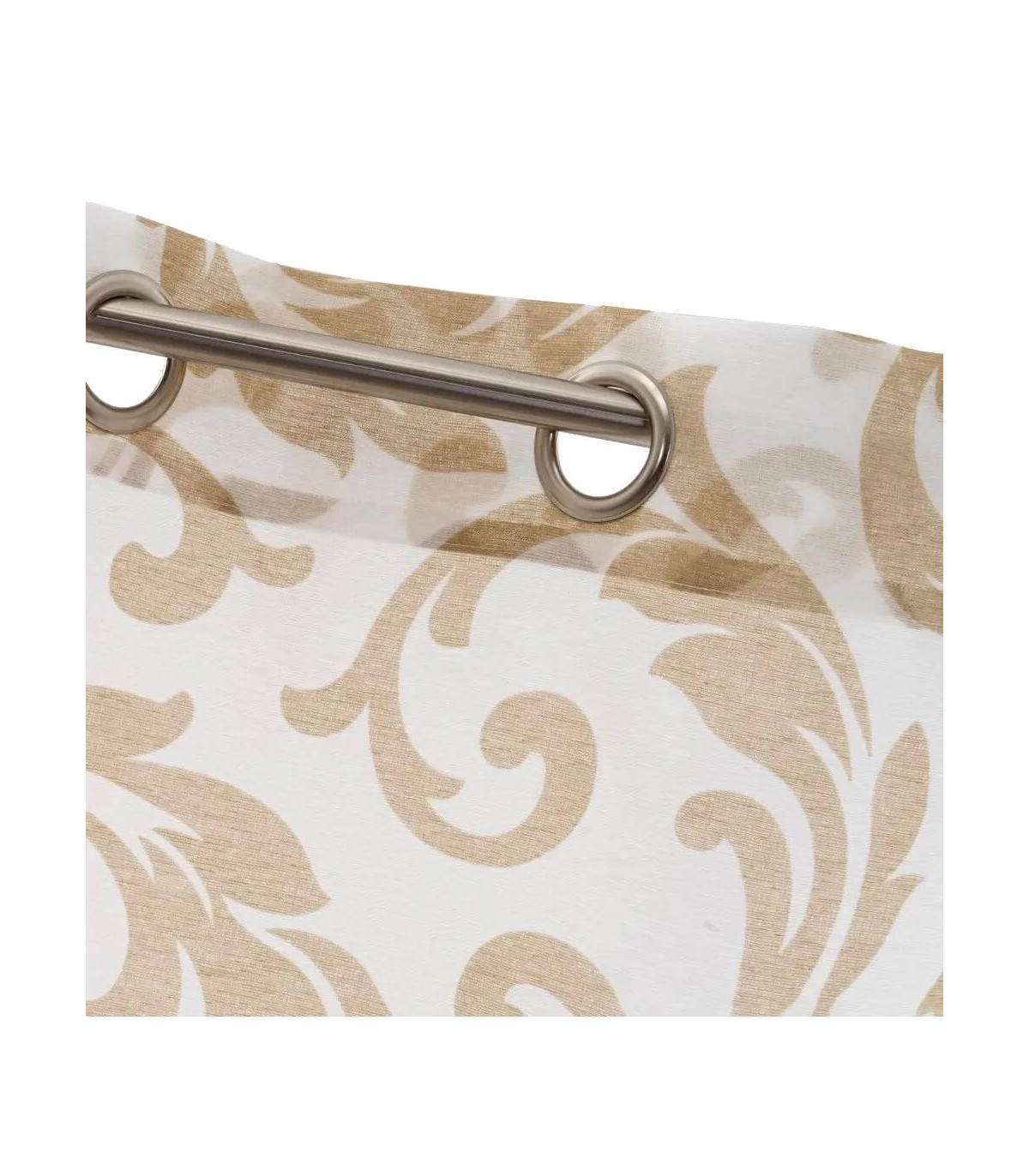Aporta luminosidad, elegancia y un toque clásico a cualquier habitación con este visillo semitransparente estampado en blanco y marrón. Perfecto para colocarlo en una barra de cortina, este visillo permite la entrada de luz natural, mientras que su diseño semi clásico mantiene la privacidad.
