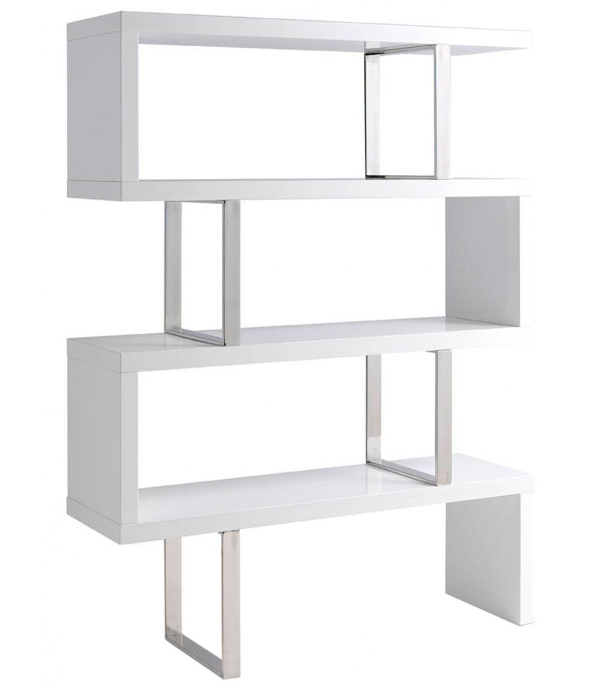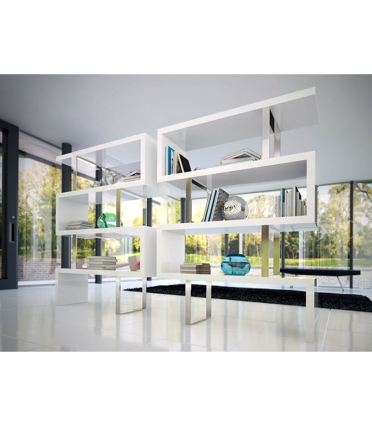 Aporta un toque contemporáneo y sofisticado a tu hogar con esta estantería grande de estilo moderno, fabricada en MDF lacado en blanco y estructura de acero inoxidable cromado.
