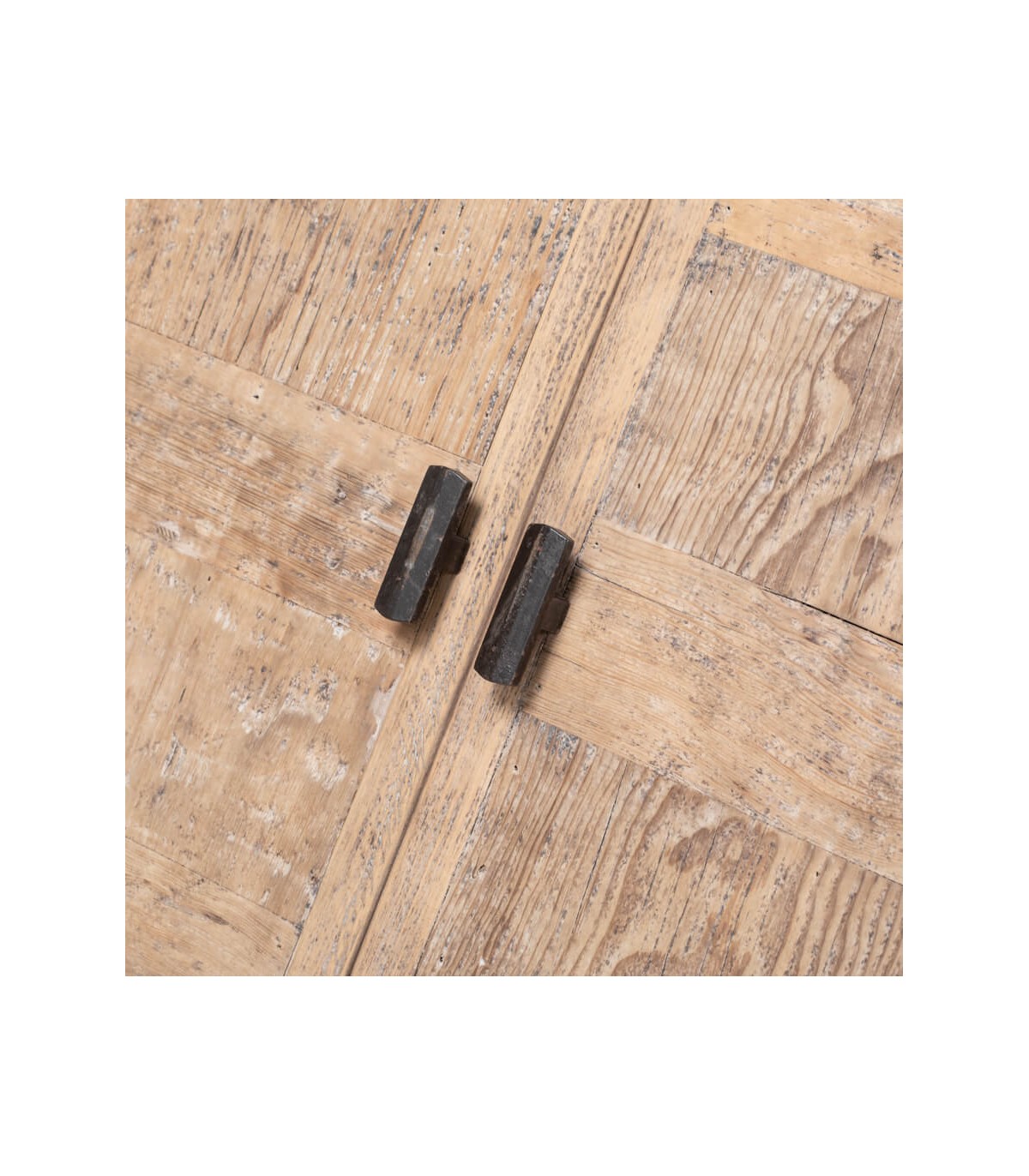 Armario alacena realizado en pino acabado natural con una muy leve pátina en blanco y los tiradores artesanales en hierro forjado acabado en negro vintage, un armario de gran capacidad, sobrio y elegante, perfecto para un gran salón cocina abierta o dormitorio.