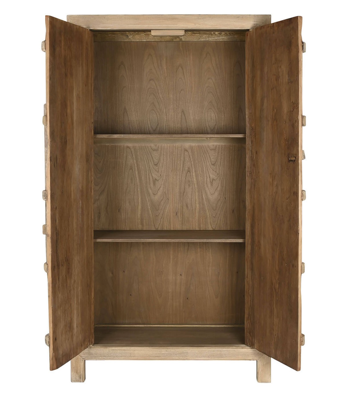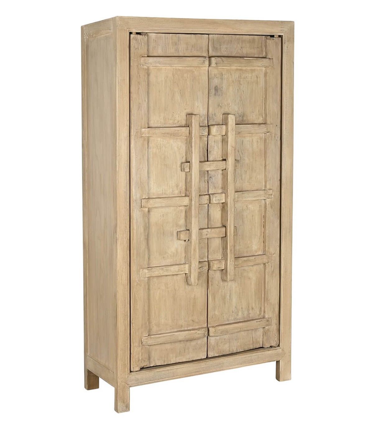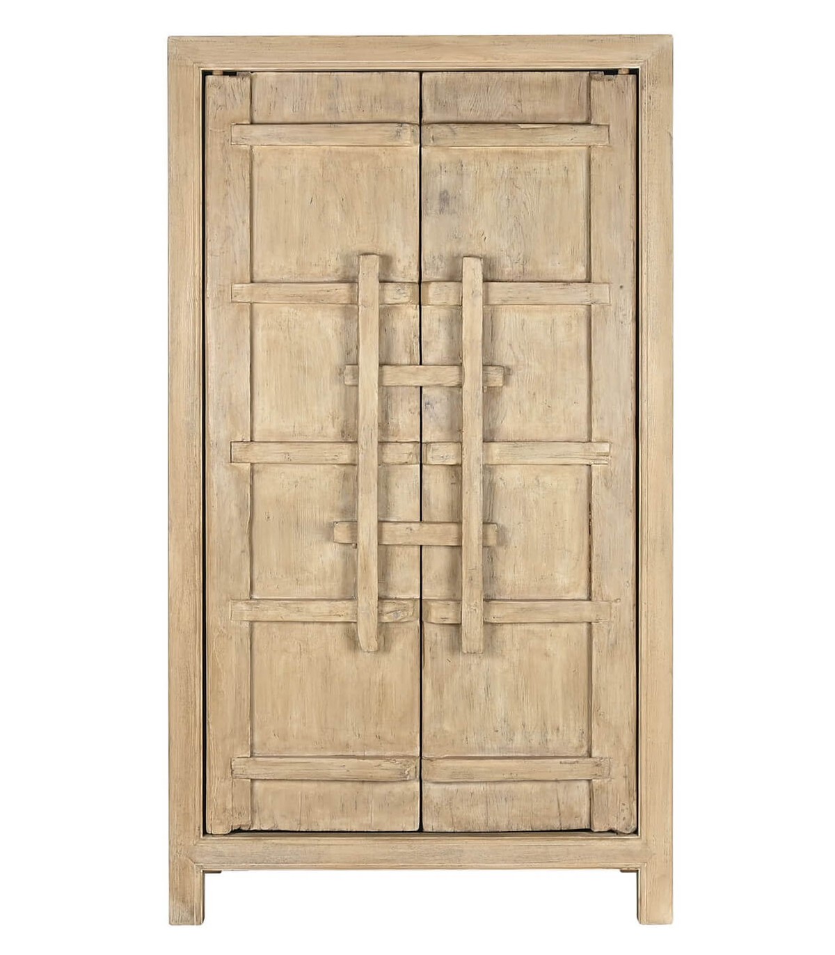 Armario alacena de estilo oriental realizado en madera de olmo acabado natural envejecido, realizado de manera artesanal, adaptable a cualquier tipo de decoración como pieza singular.